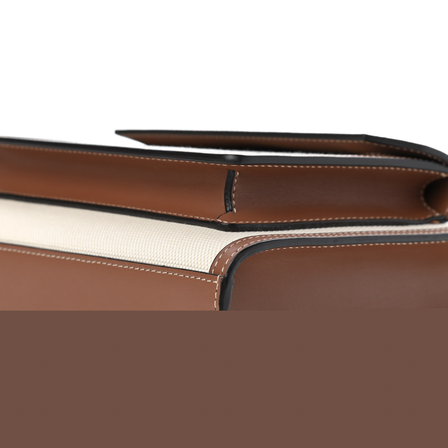 BURBERRY Canvas Smooth Calfskin Two Tone Mini Pocket Bag Natural Malt Brown
