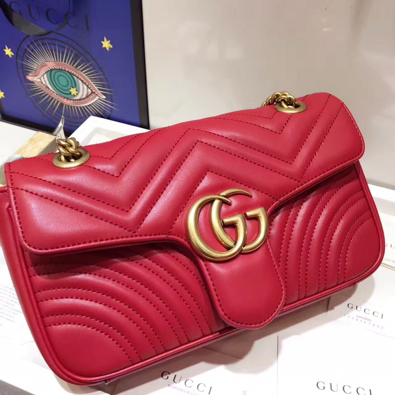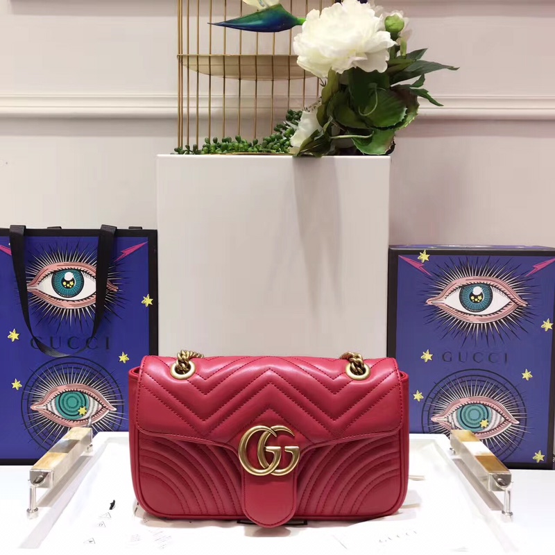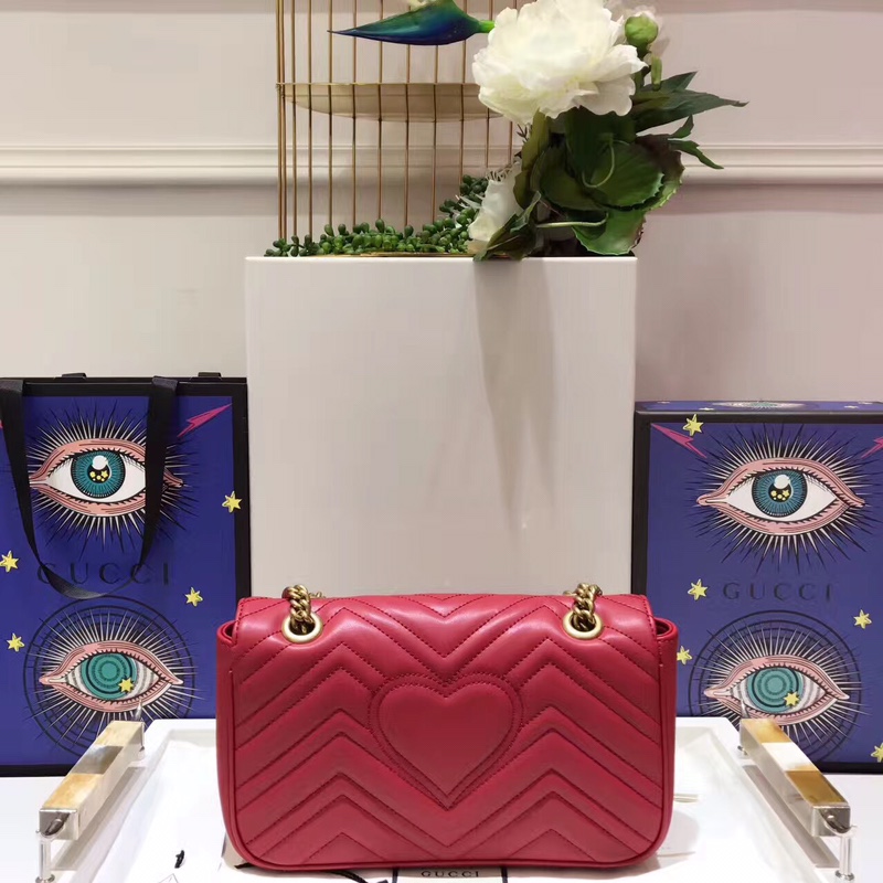 GUCCI Calfskin Matelasse Small GG Marmont Shoulder Bag Hibiscus Red
