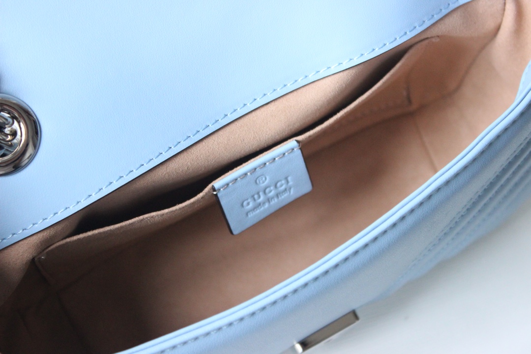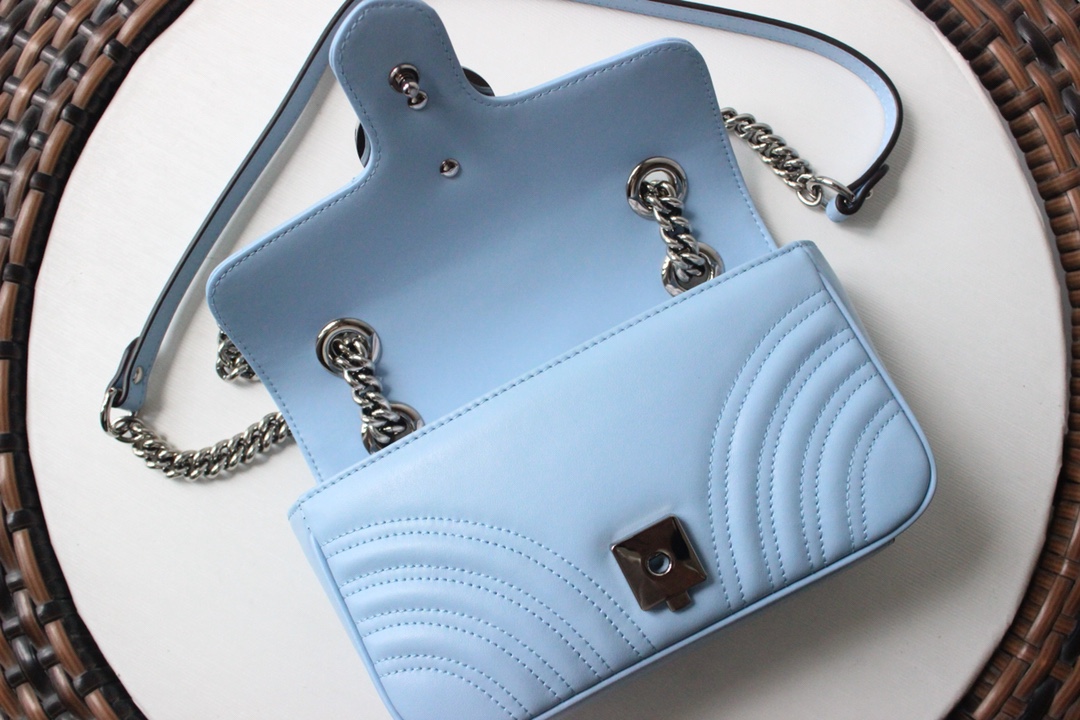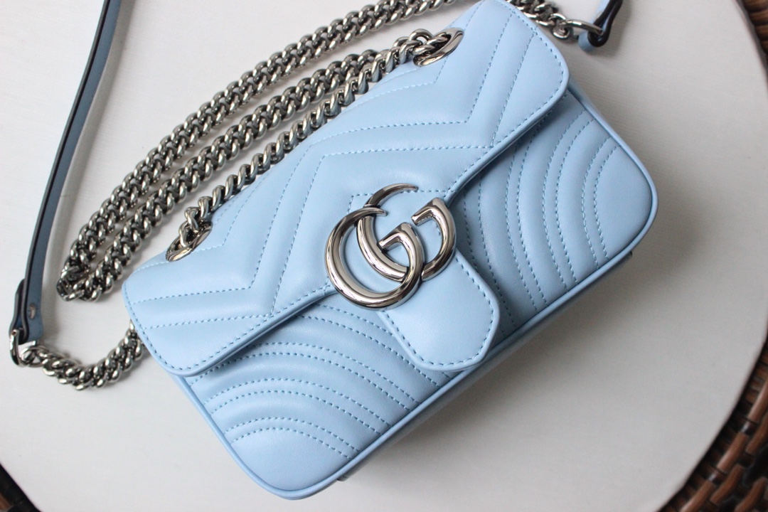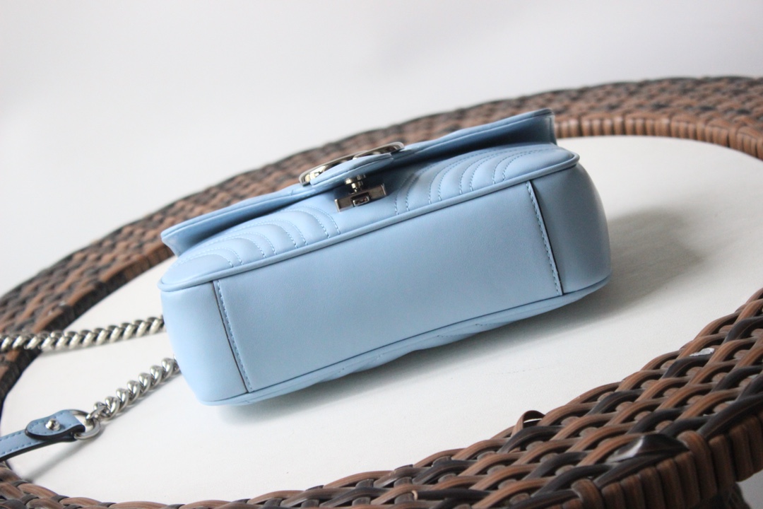 GUCCI Calfskin Matelasse Small GG Marmont Shoulder Bag Pastel Blue