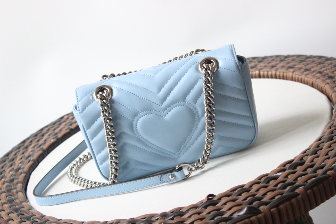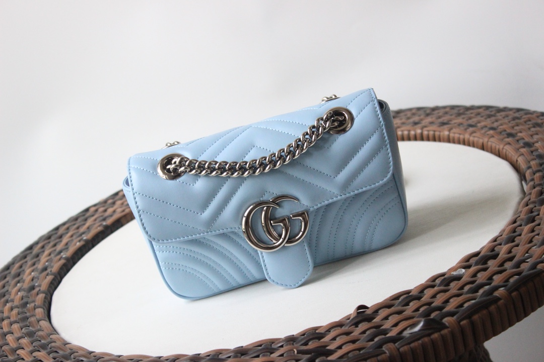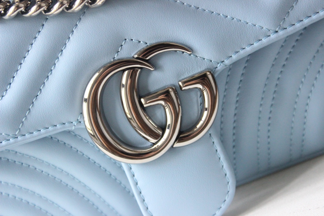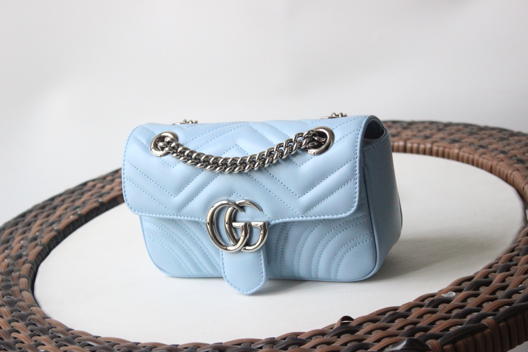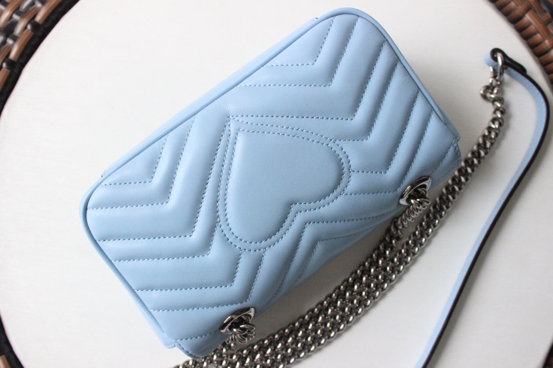 GUCCI Calfskin Matelasse Small GG Marmont Shoulder Bag Pastel Blue