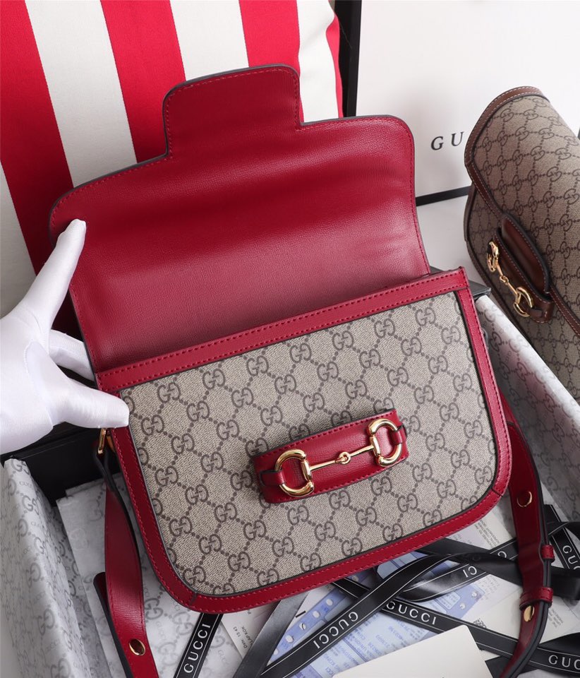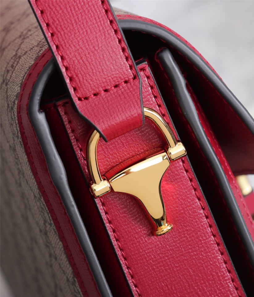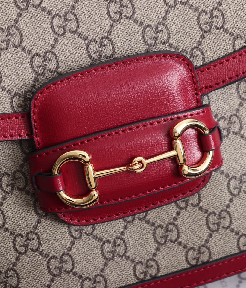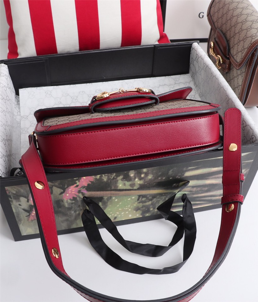 GUCCI GG Supreme Monogram 1955 Horsebit Shoulder Bag Red