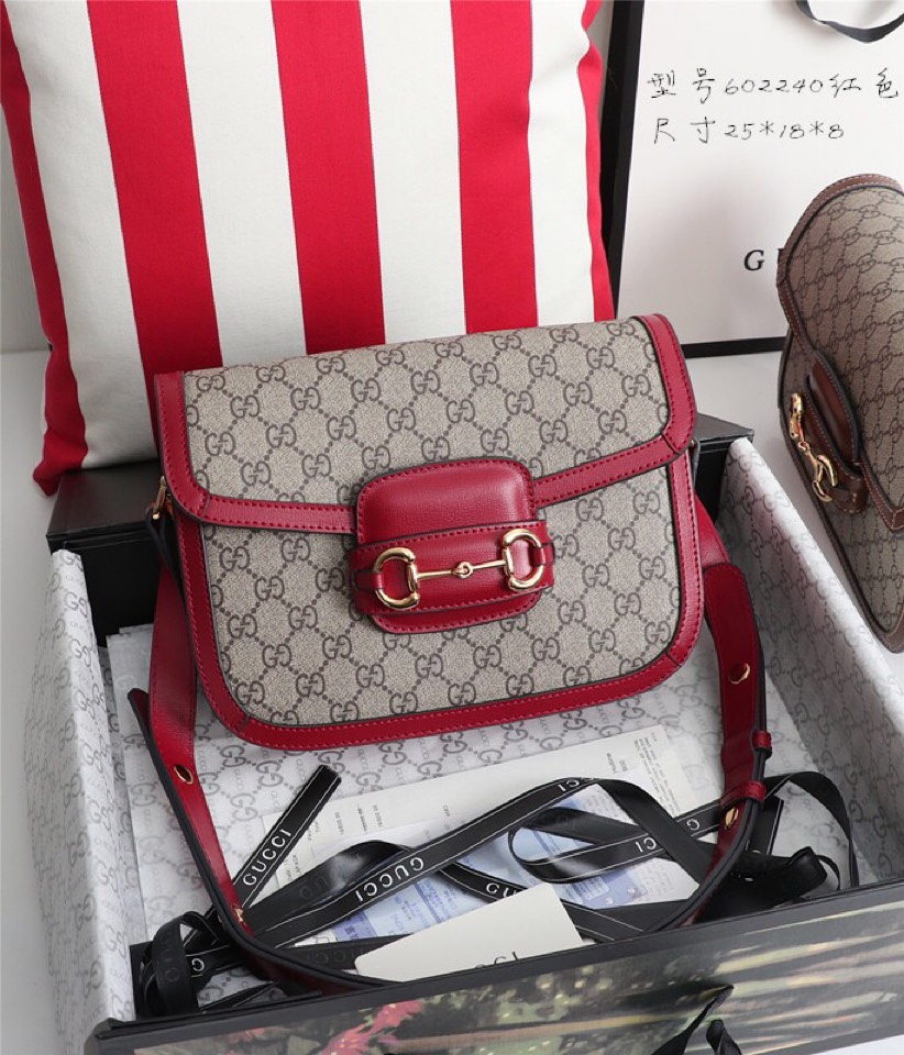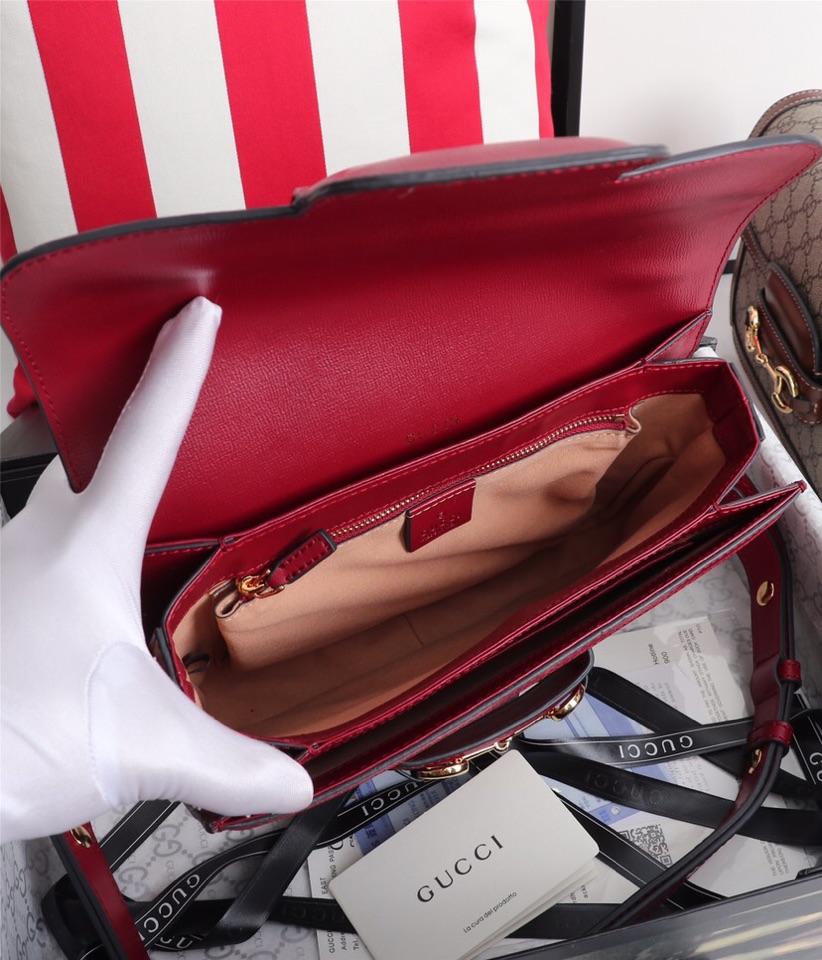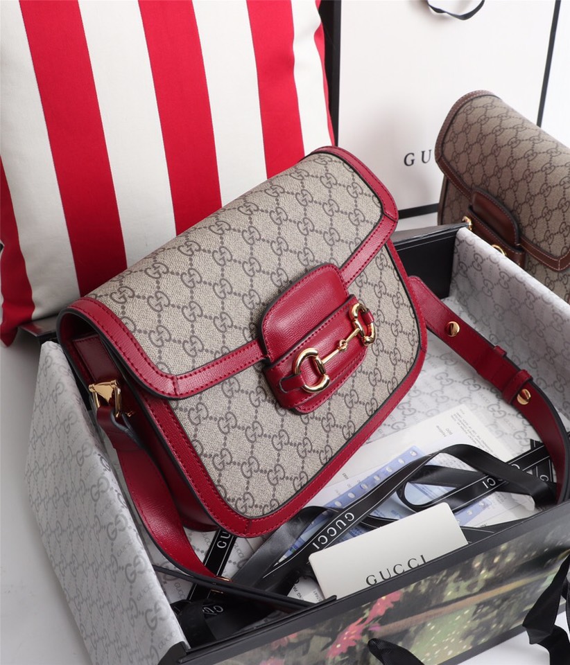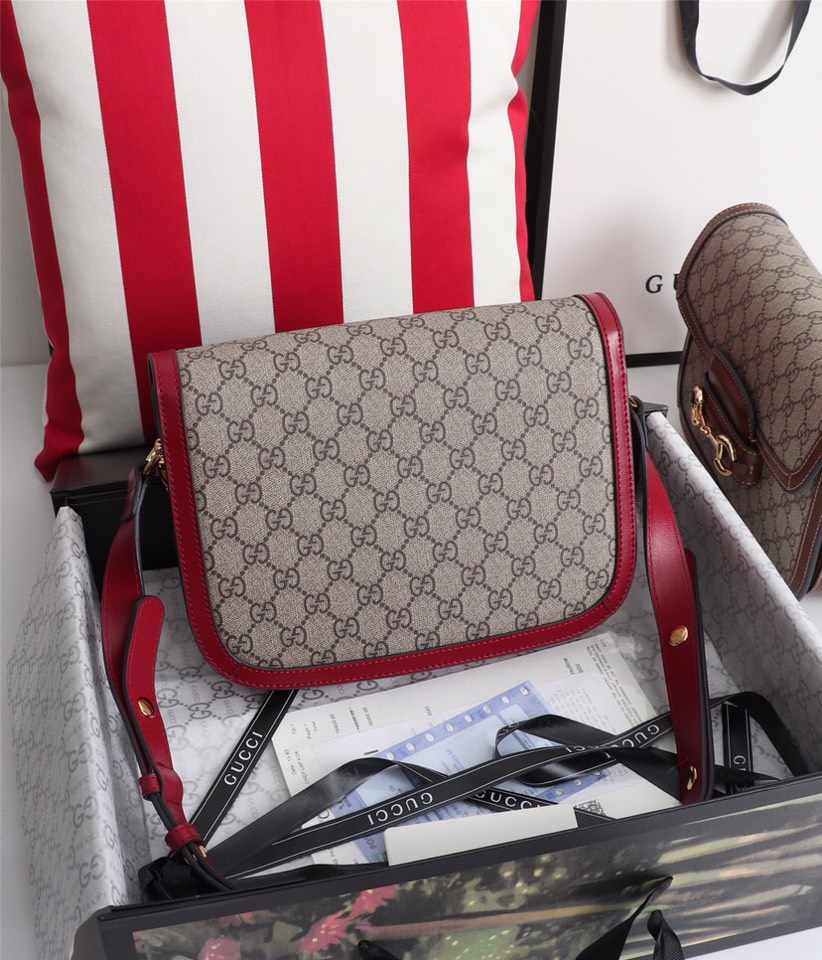 GUCCI GG Supreme Monogram 1955 Horsebit Shoulder Bag Red