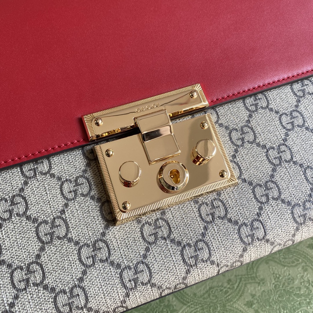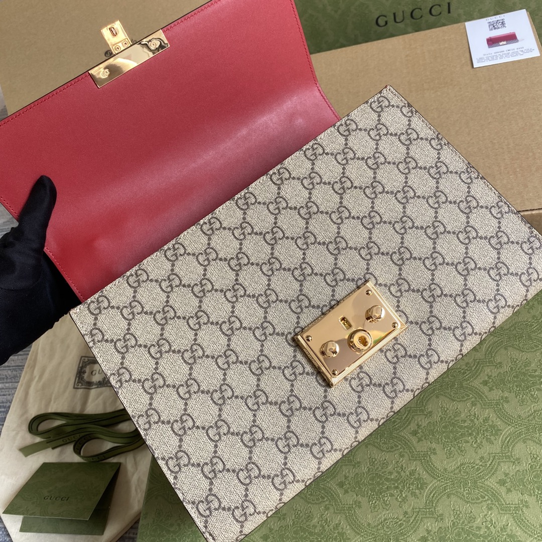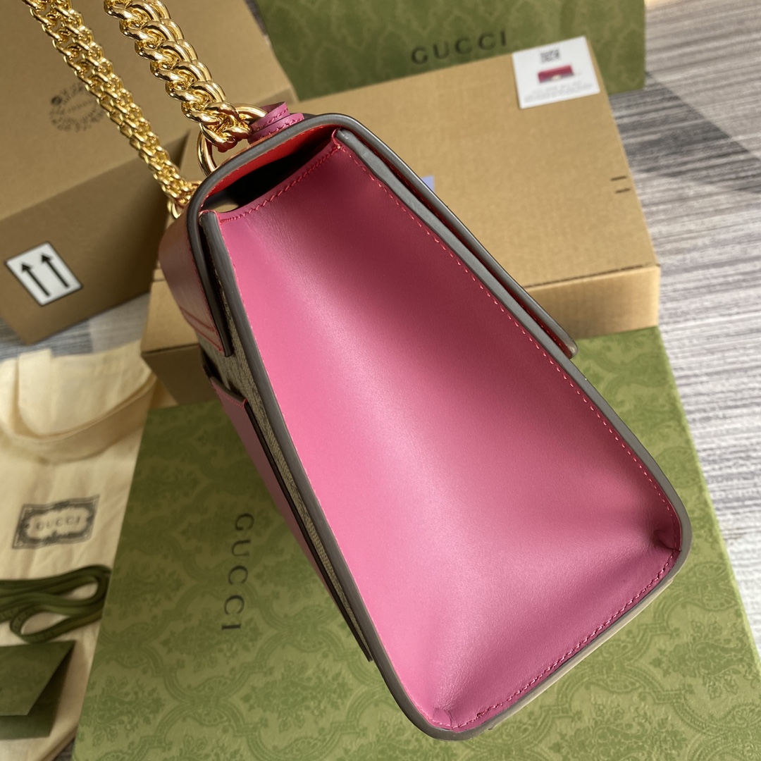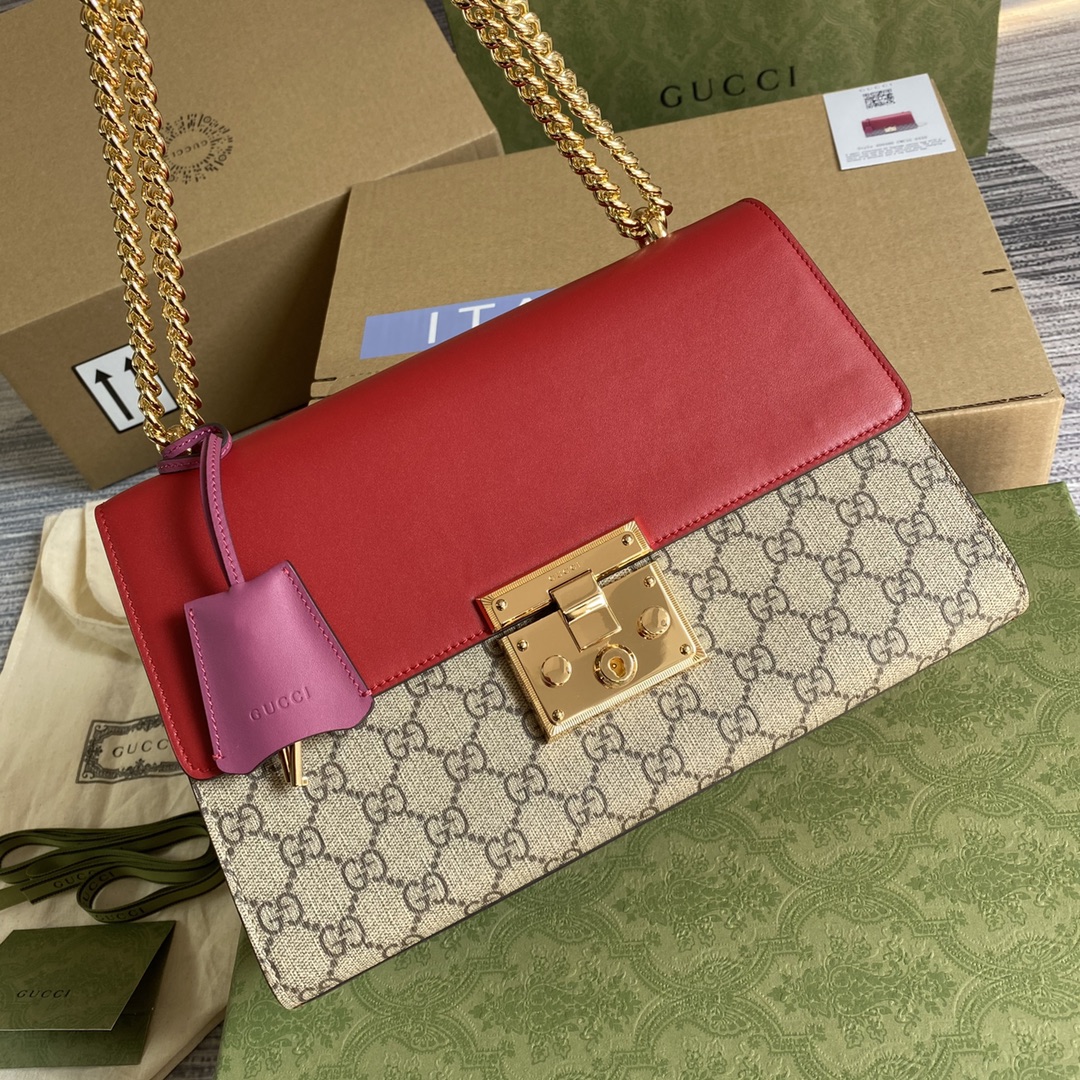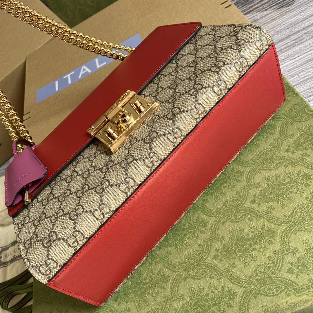 GUCCI GG Supreme Monogram Medium Padlock Shoulder Bag Hibiscus Pink