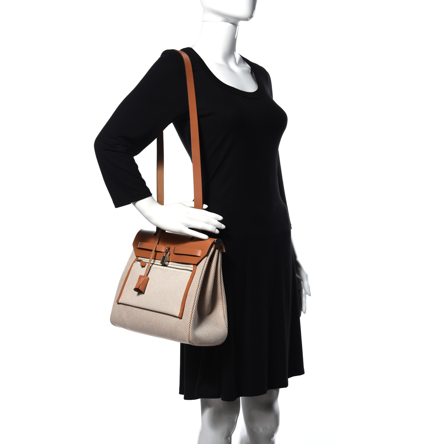 HERMES Vache Hunter Criss Viking Herbag Zip Retourne 31 PM Ecru Beige Naturel