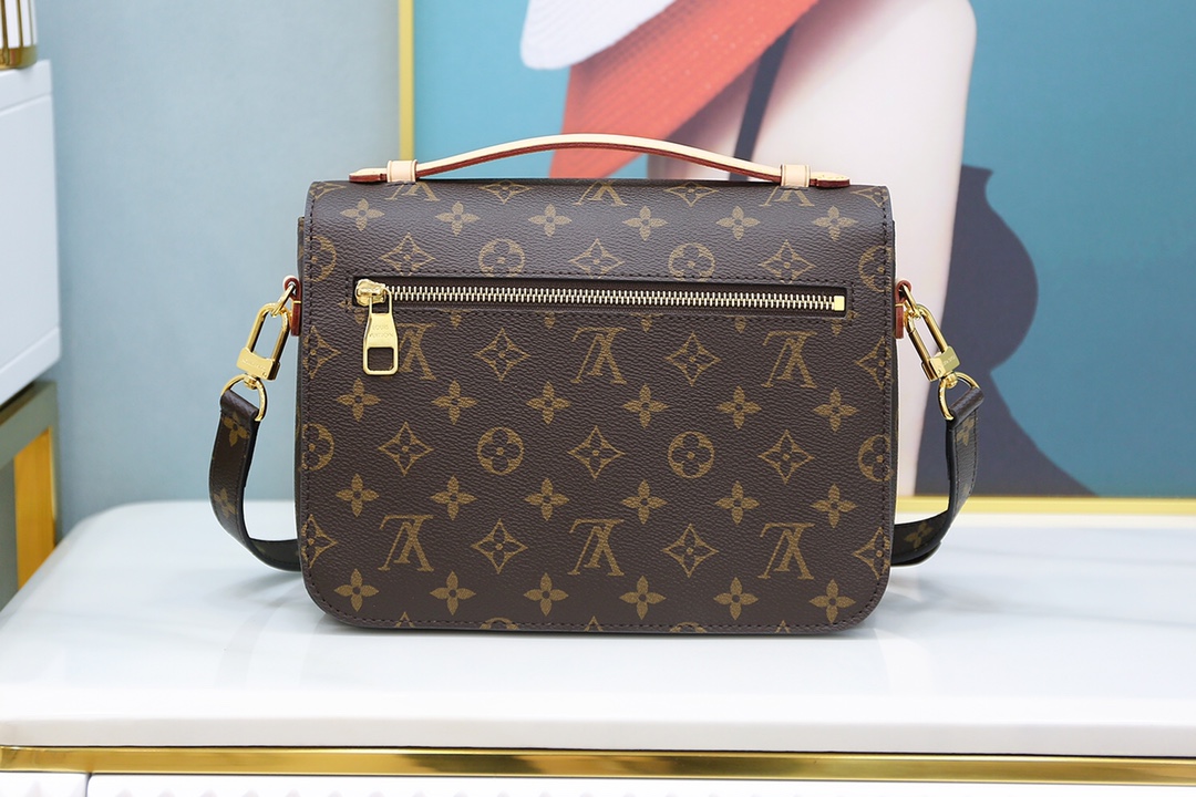 This chic handbag is finely crafted of classic Louis Vuitton monogram toile canvas. The bag features a vachetta cowhide leather top handle, an optional, adjustable monogram canvas shoulder strap, and a rear zipper pocket. The envelope-style crossover flap opens with a polished brass S-lock to a partitioned brown microfiber interior. This is the perfect messenger bag for everyday essentials, from Louis Vuitton!