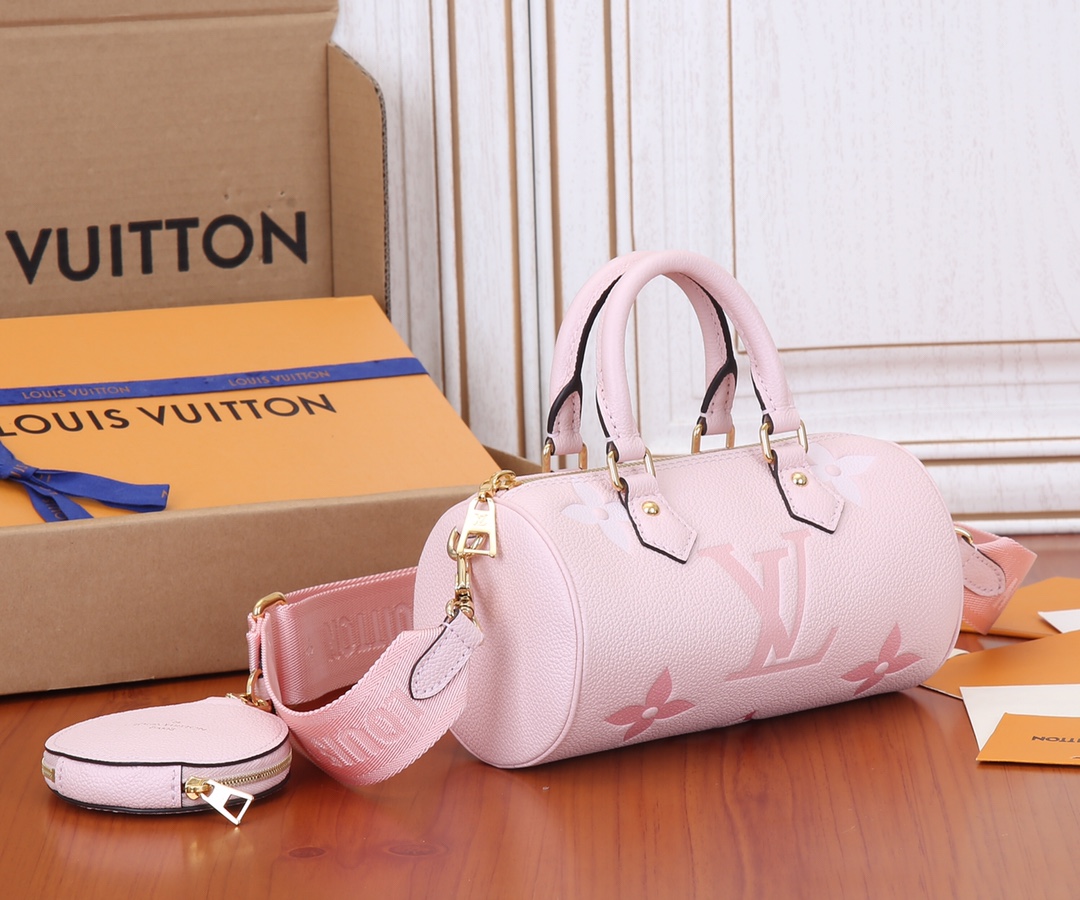 The Papillon BB handbag selects Monogram Empreinte leather depicting the Monogram gradient print to reproduce the classic Papillon handbag silhouette in a pocket size. The detachable jacquard shoulder strap delivers a sporty atmosphere, and the detachable round coin pocket adds a touch of fun. Embossed grain cowhide, cowhide trim, microfiber lining, detachable round coin pocket, shoulder strap with D-ring, inner patch pocket, detachable, adjustable shoulder strap! !