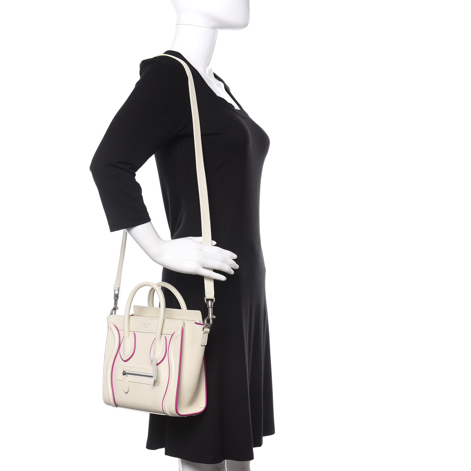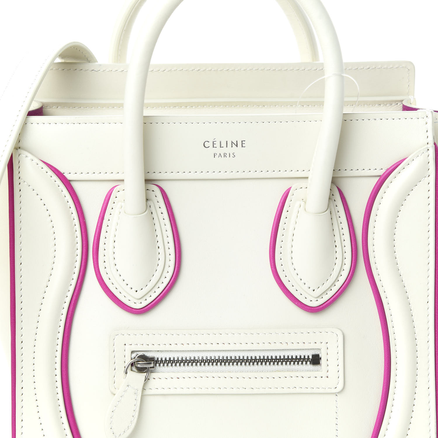 CELINE Smooth Calfskin Nano Luggage White Magenta