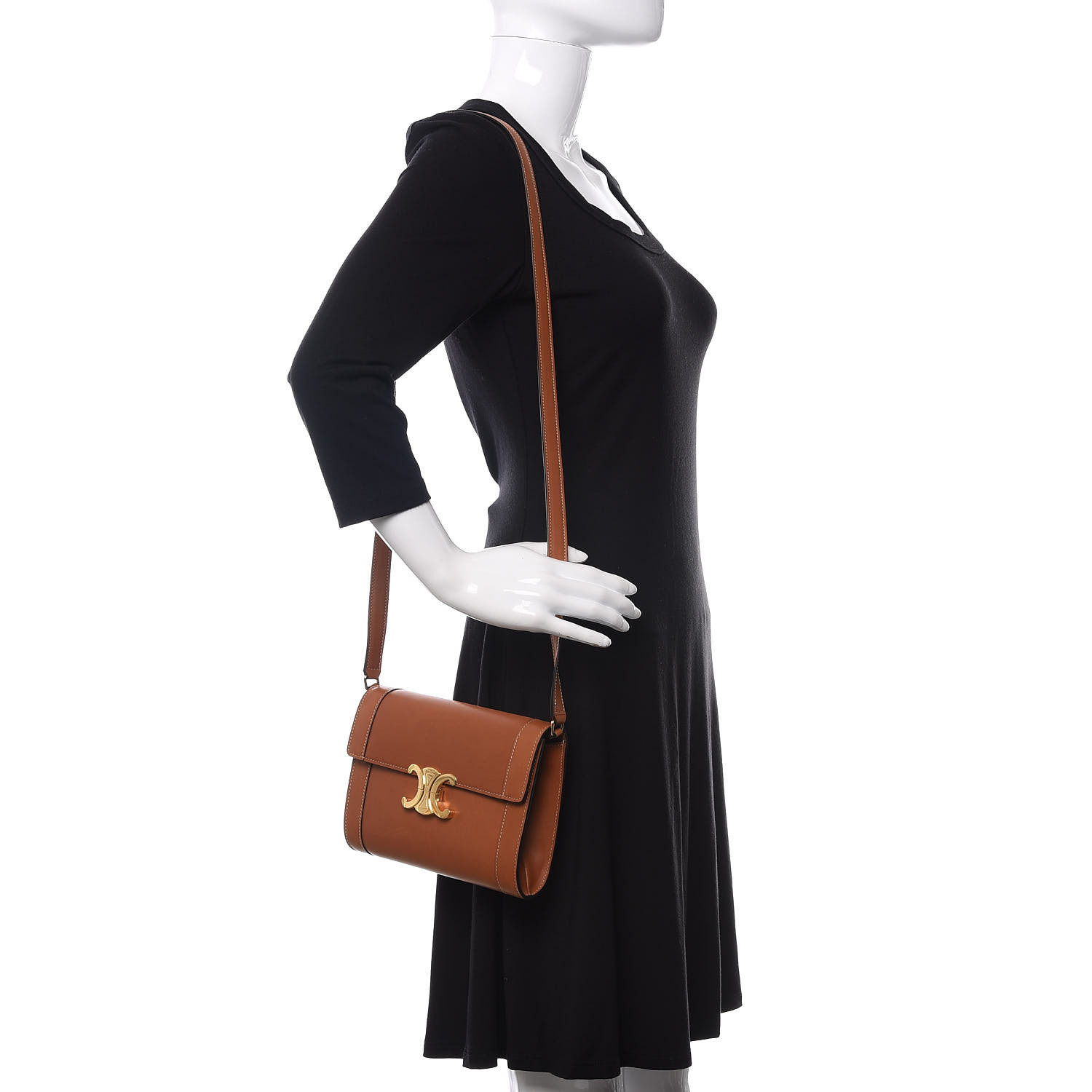 CELINE Natural Calfskin Triomphe Strap Bag Tan