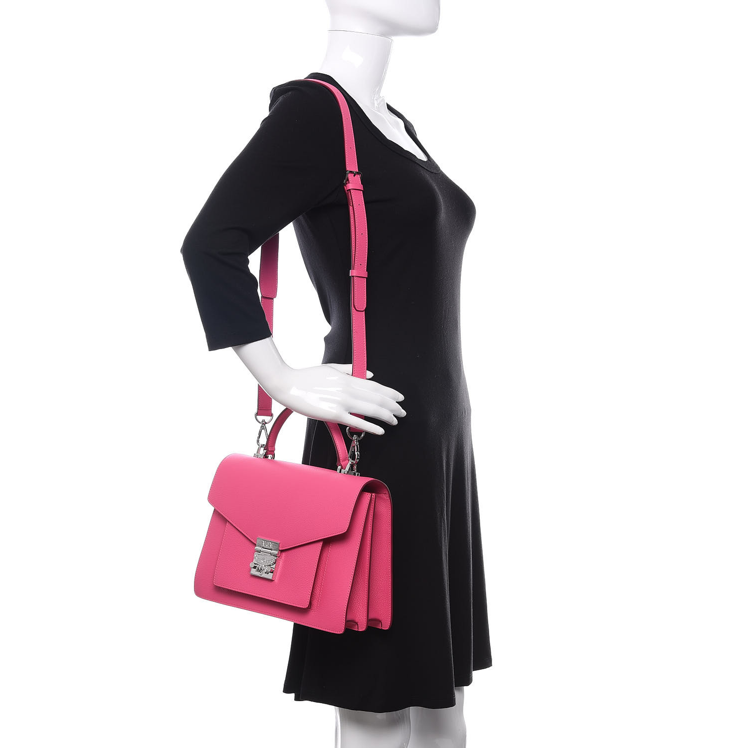 MCM Grained Calfskin Medium Patricia Park Avenue Satchel Sugar Pink