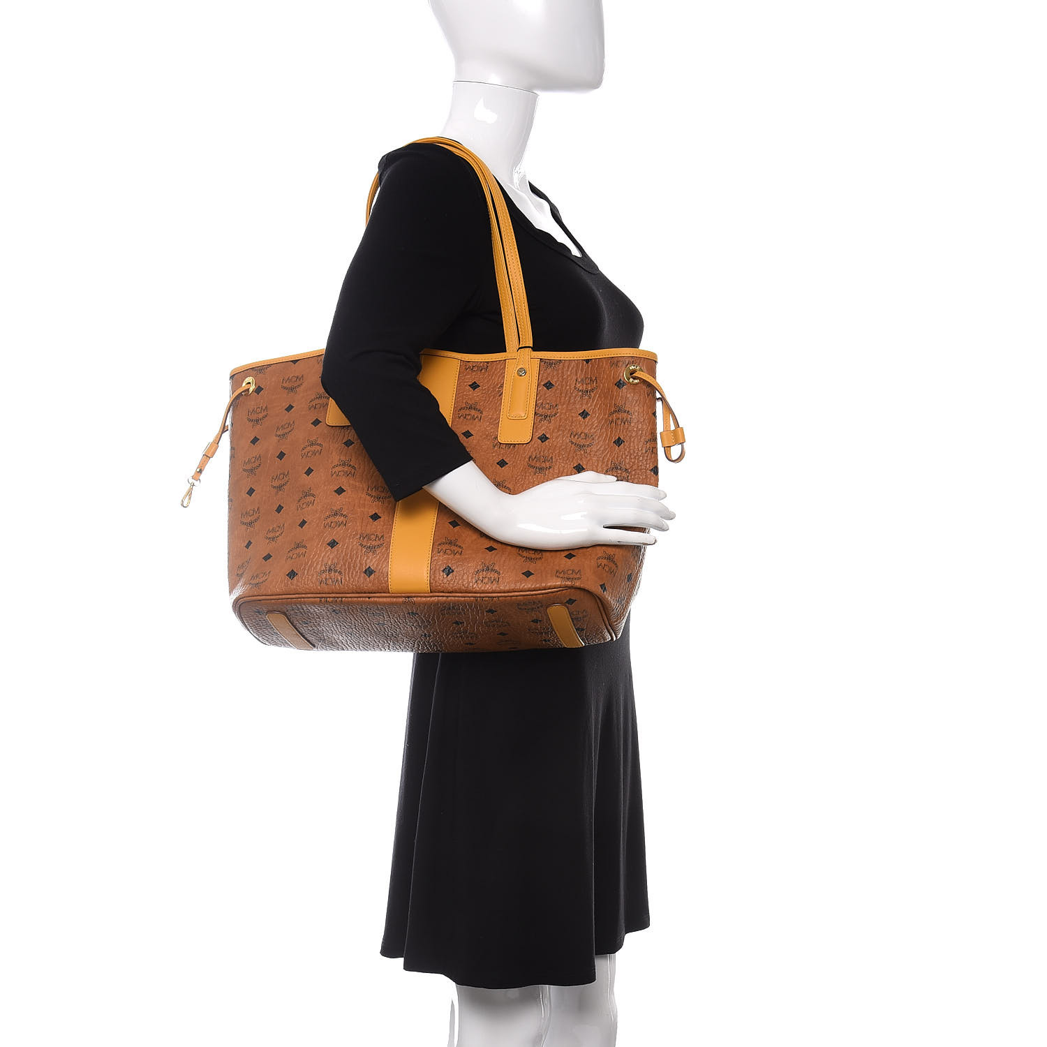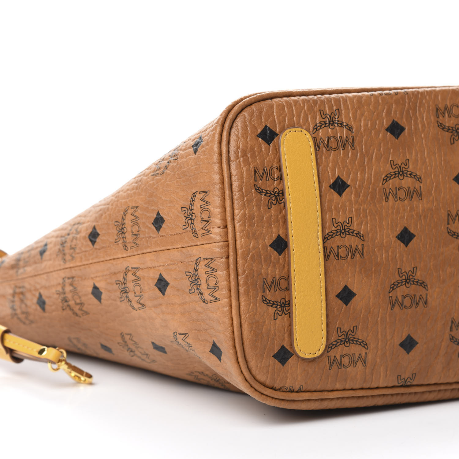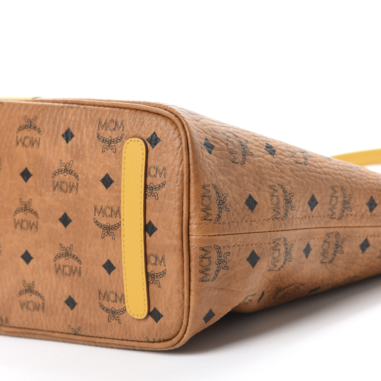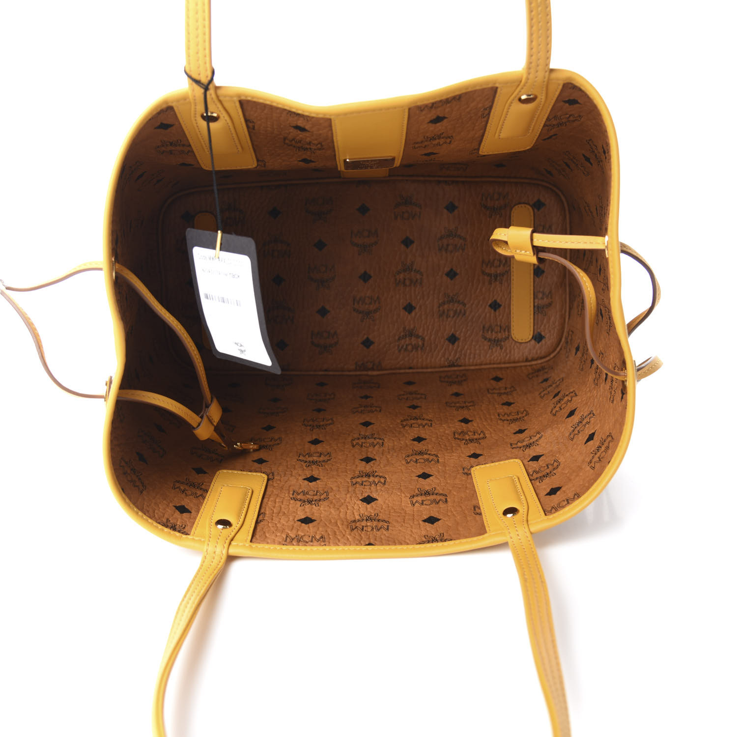 MCM Visetos Medium Liz Reversible Shopper Tote Cognac Yellow