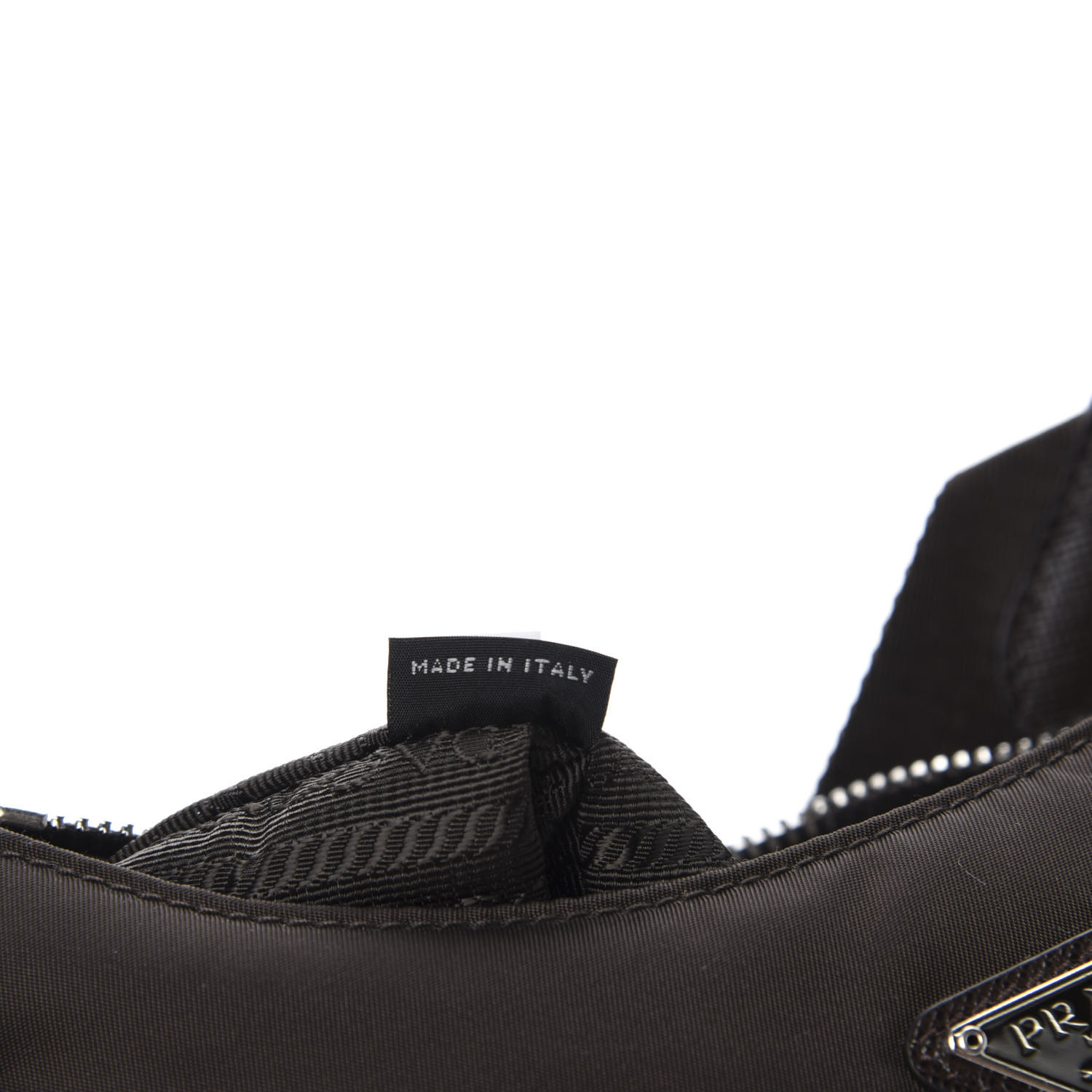 This petite messenger bag is crafted of fine brown nylon with polished silver hardware. It features saffiano cross-grain leather trim an adjustable brown nylon crossbody strap, a silver chain strap, and a removable pouch. The top zipper opens to a brown Prada monogram jacquard interior for your everyday necessities, only from Prada!.jpg)