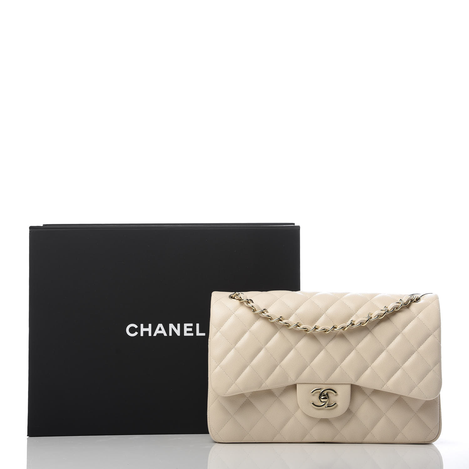 CHANEL Caviar Quilted Jumbo Double Flap Beige Clair