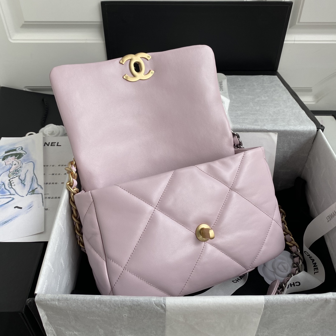 CHANEL Lambskin Quilted Medium 19 Flap Light Pink