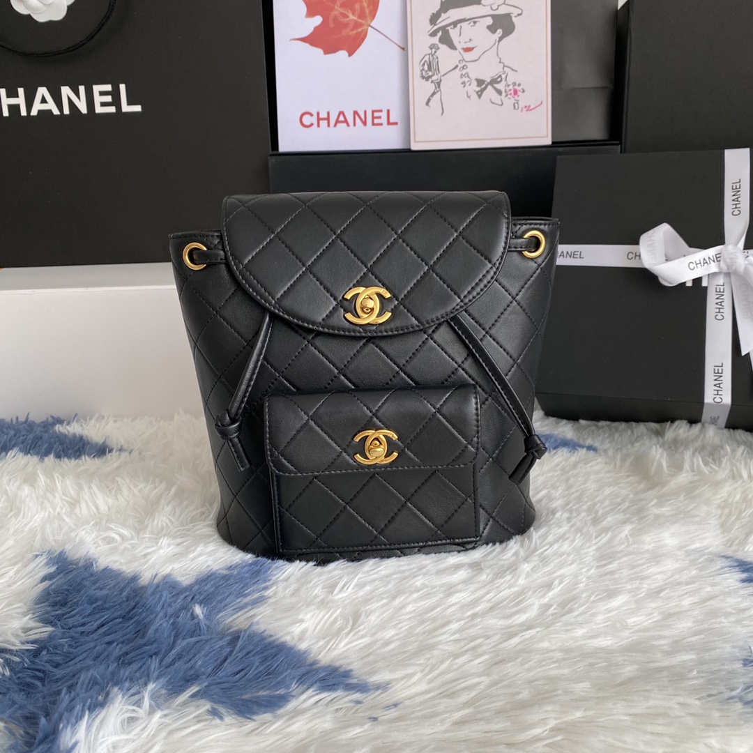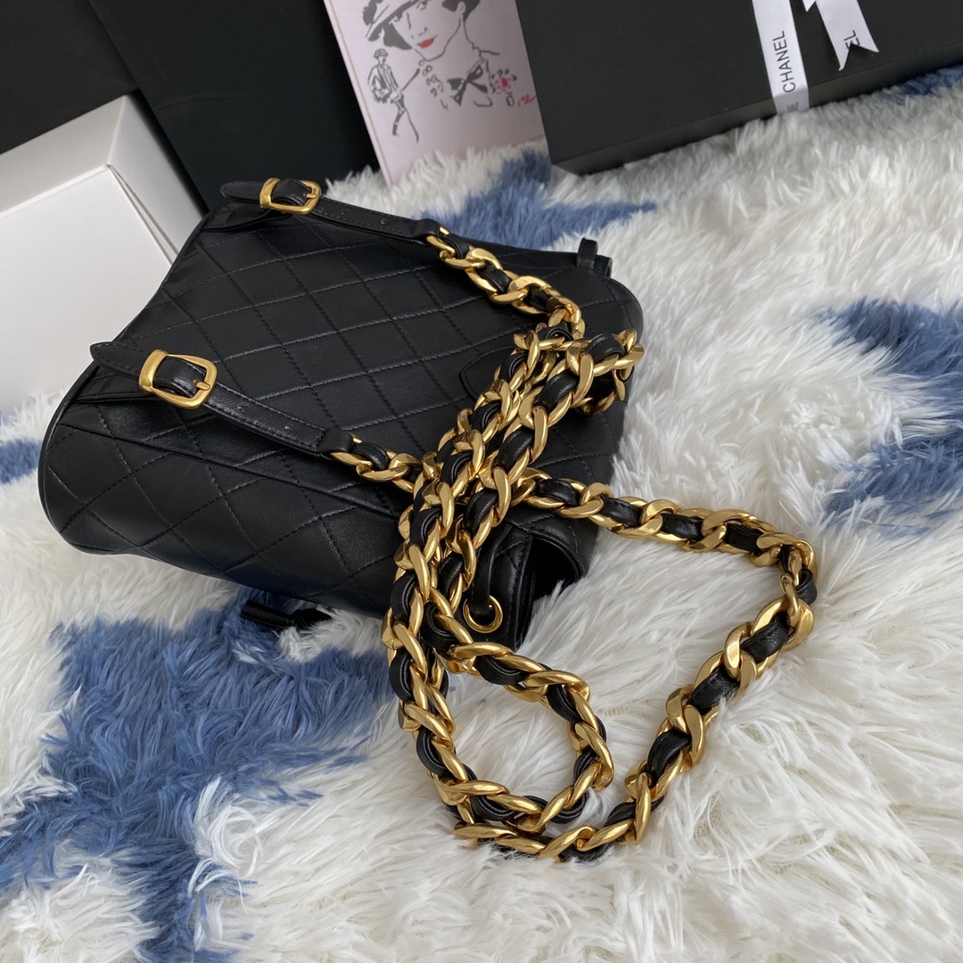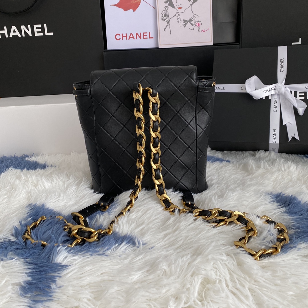 CHANEL Lambskin Quilted Backpack Black