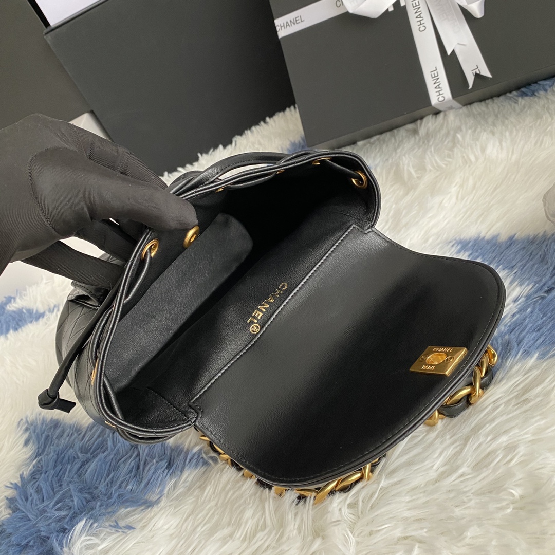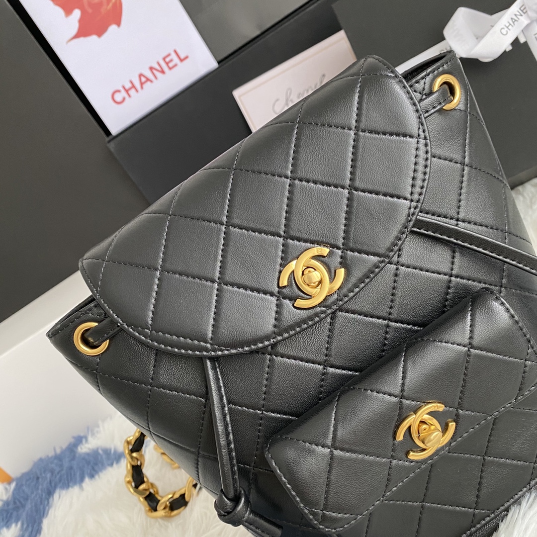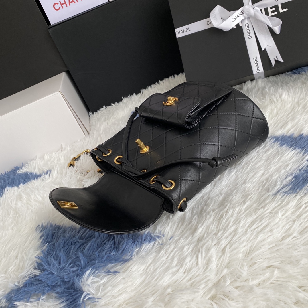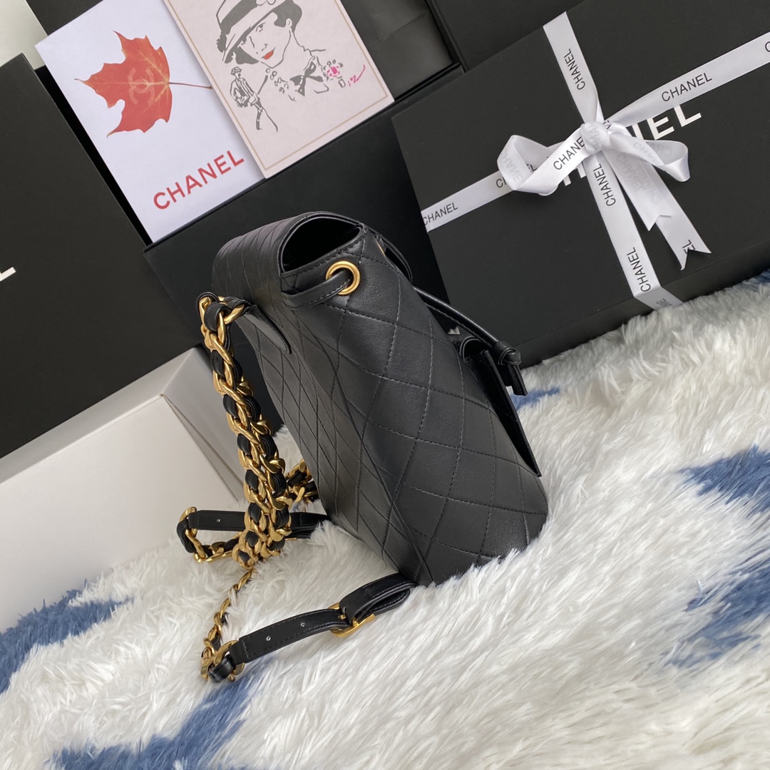 CHANEL Lambskin Quilted Backpack Black