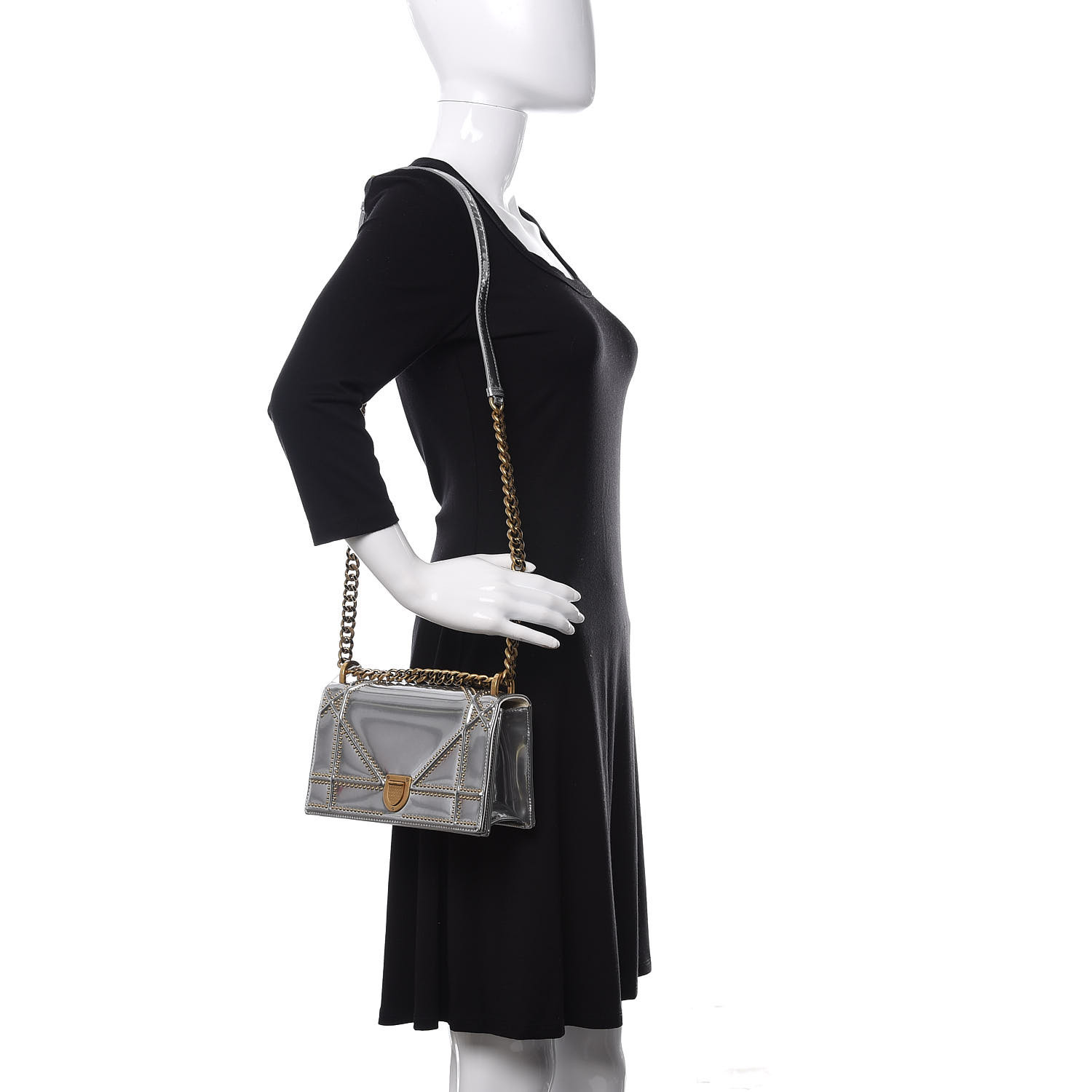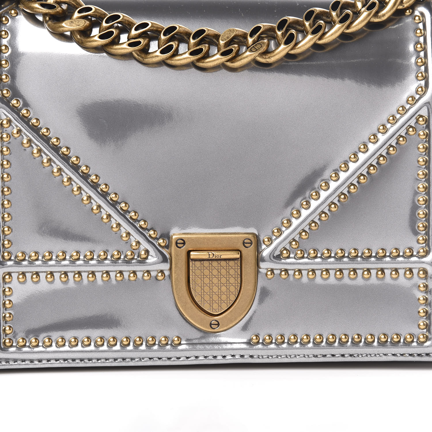 DIOR Metallic Calfskin Studded Small Diorama Silver