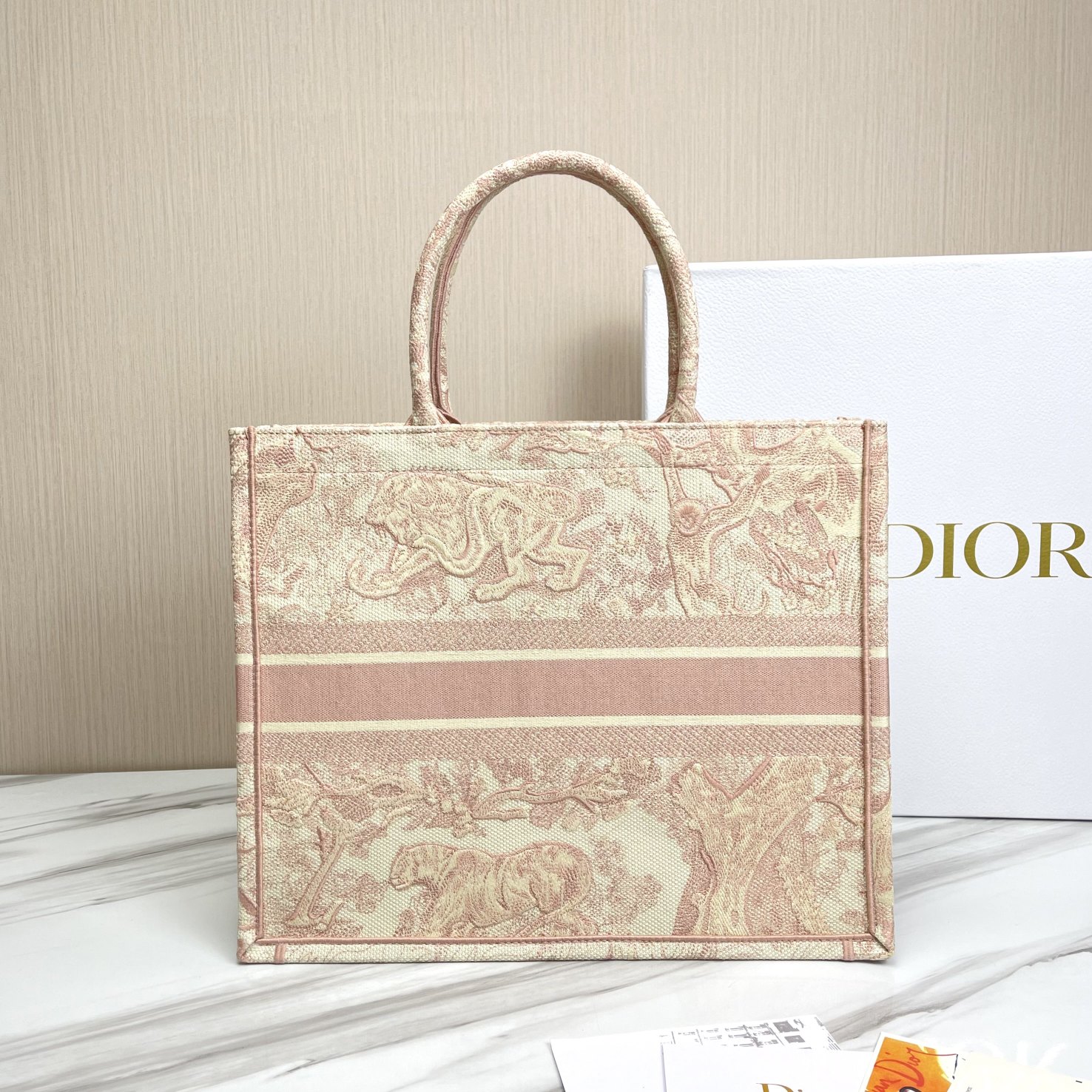 DIOR Canvas Embroidered Toile De Jouy Dioriviera Book Tote Rose