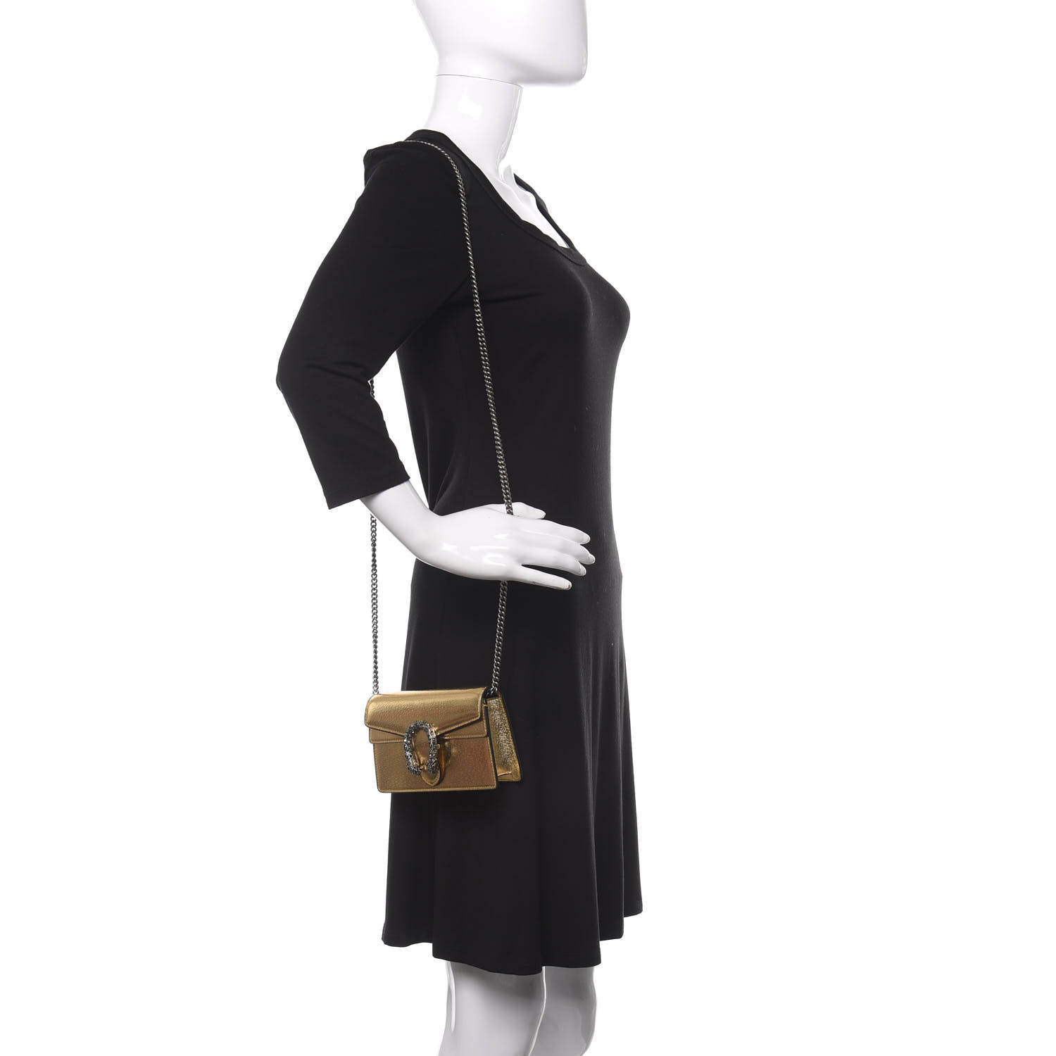 GUCCI Metallic Calfskin Super Mini Dionysus Bag Gold