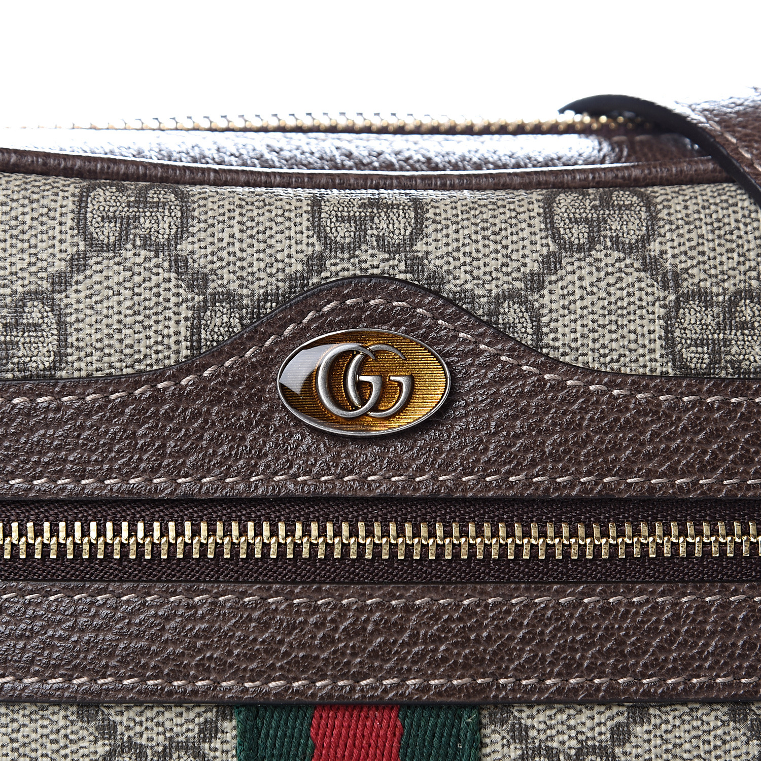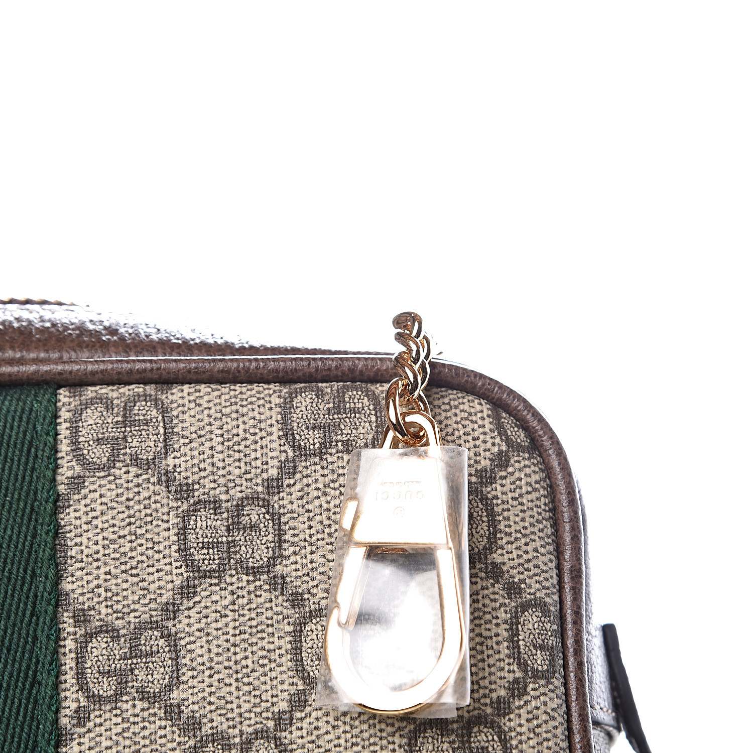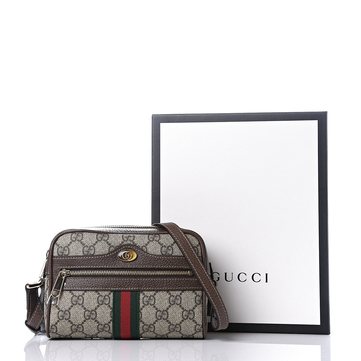 This camera-style crossbody bag is crafted of Gucci GG supreme monogram coated canvas, with brown leather trim. The bag features a front zipper pocket with the signature green and red web stripe design and an adjustable shoulder strap with polished gold hardware. The top zipper opens to a soft beige microfiber interior with a patch pocket. This petite shoulder bag is suitable for all of your daily essentials, only from Gucci!.jpg)