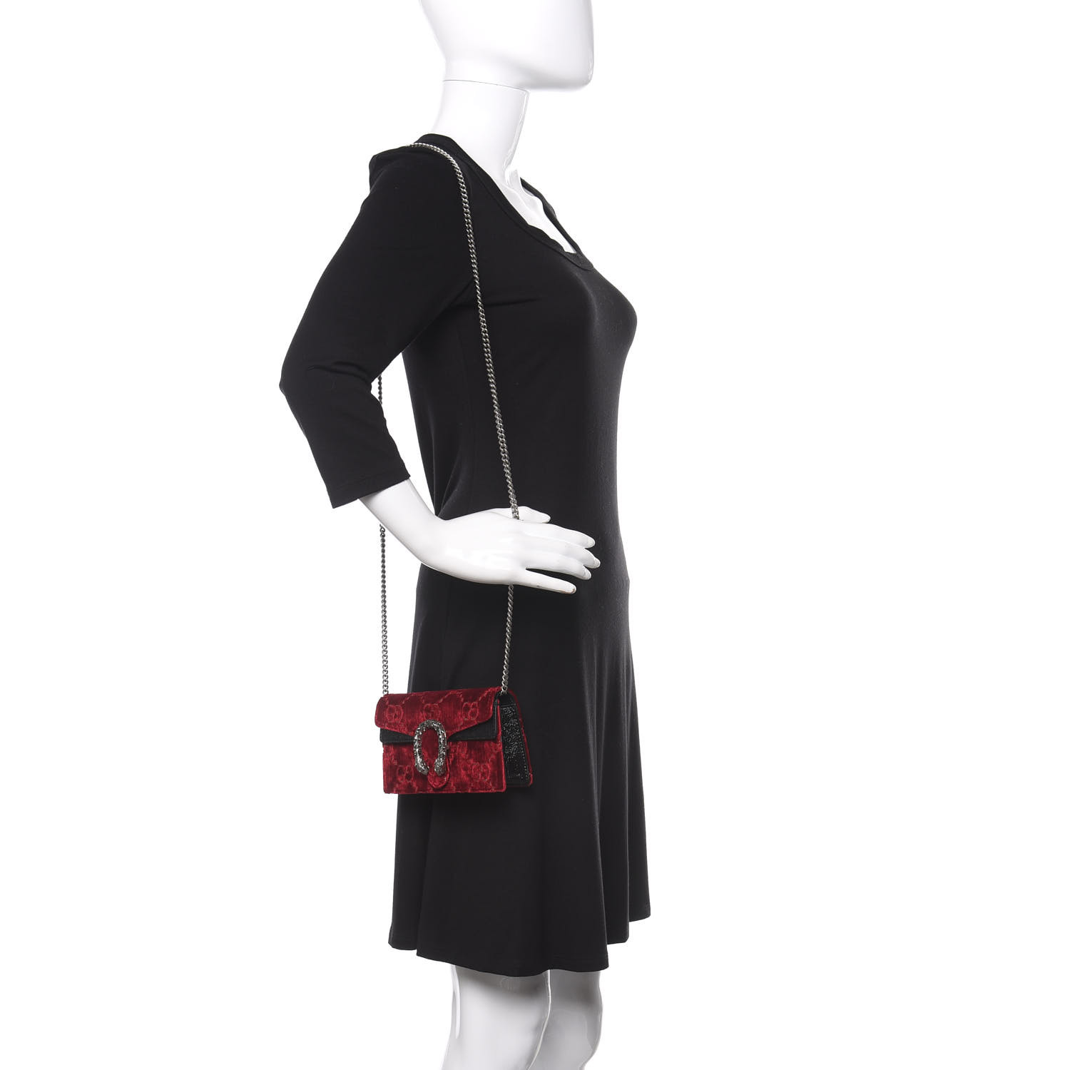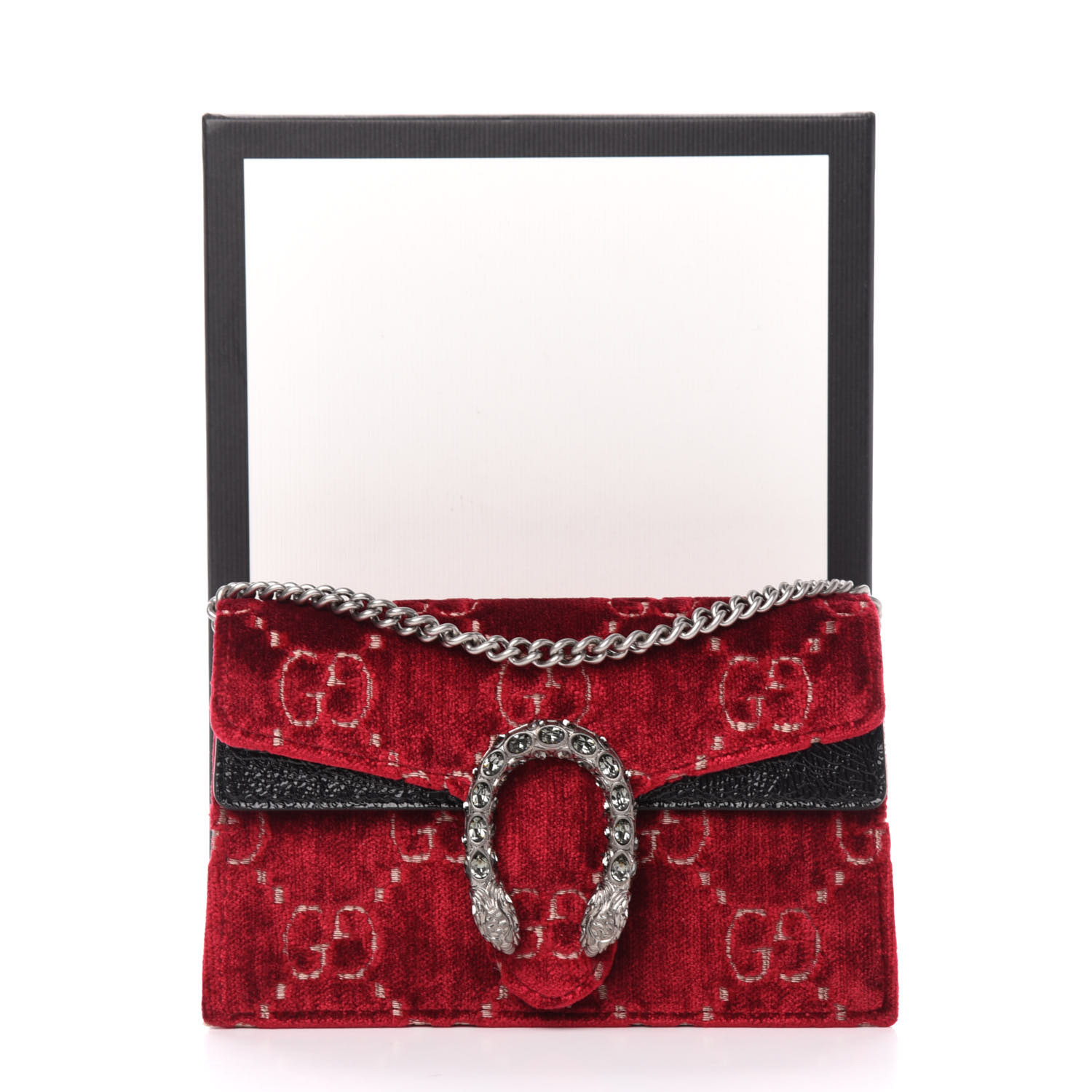 GUCCI Monogram Velvet Super Mini Dionysus Bag Red