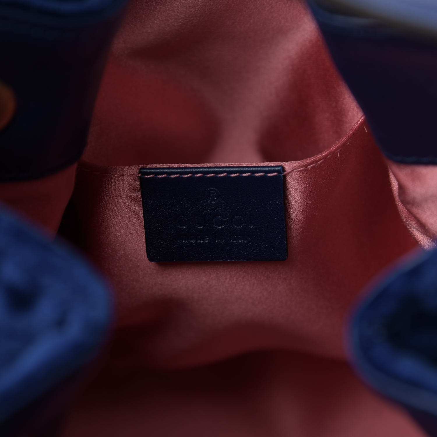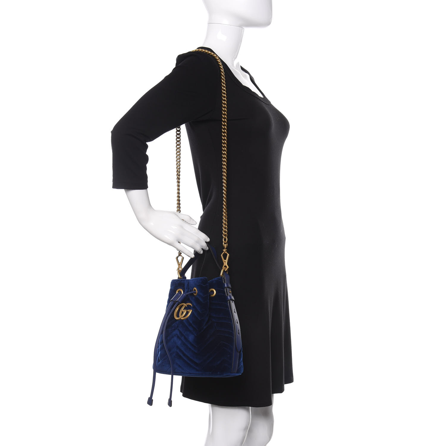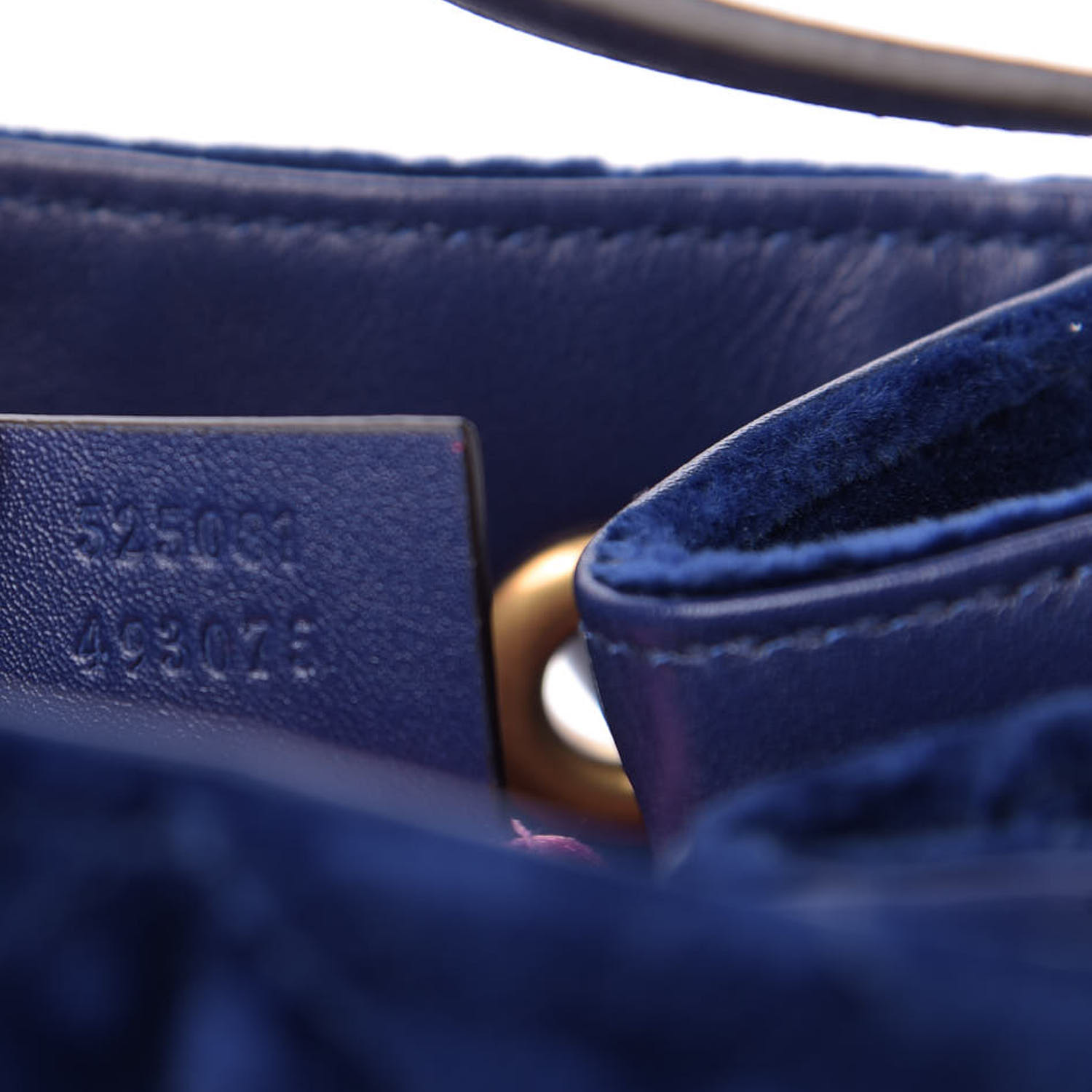 GUCCI Velvet Matelasse GG Marmont Bucket Bag Cobalt Blue