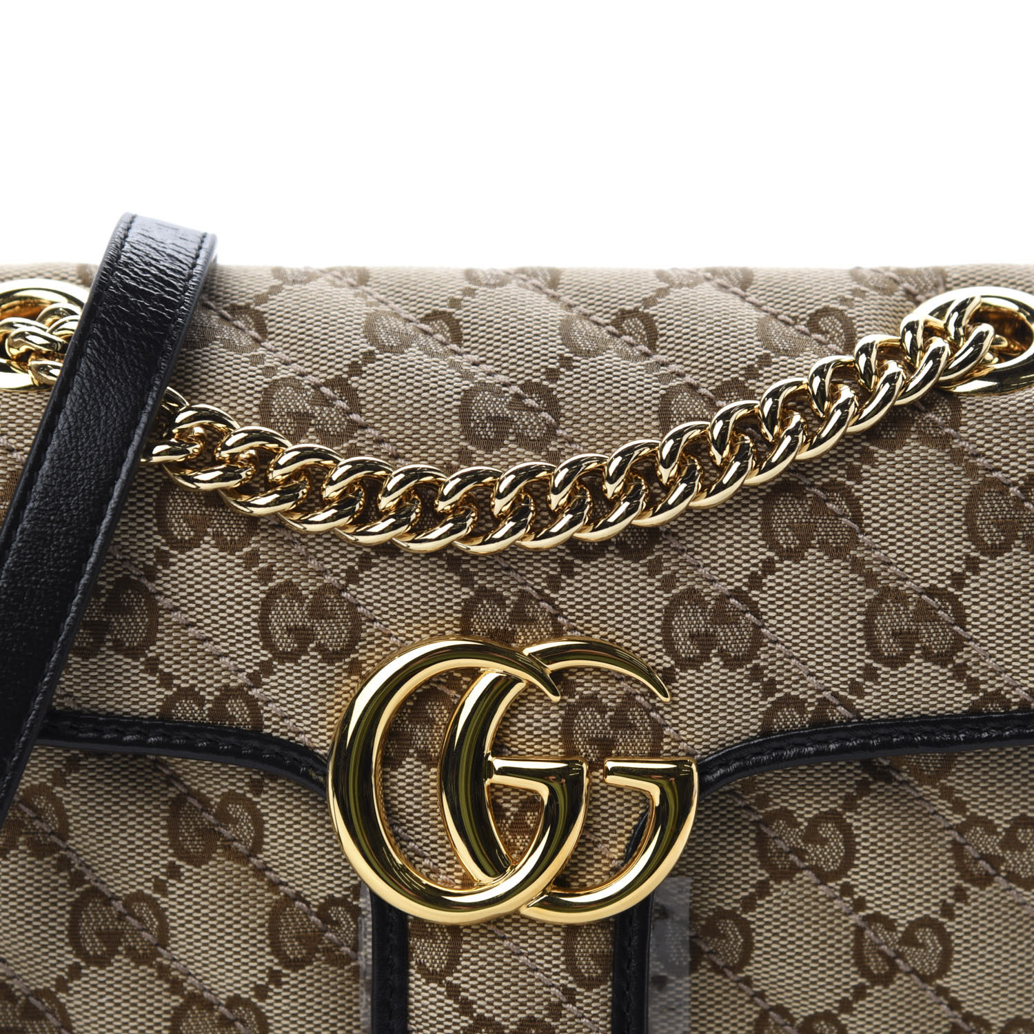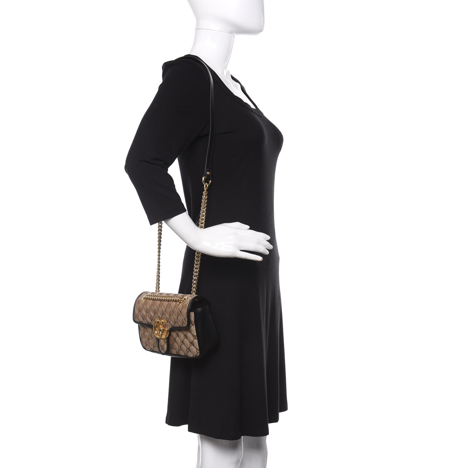 GUCCI Monogram Matelasse Mini GG Marmont Beige Ebony
