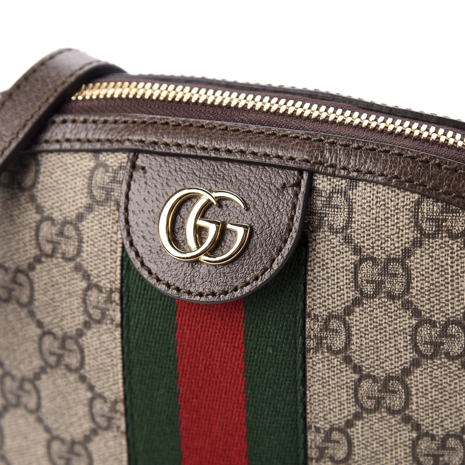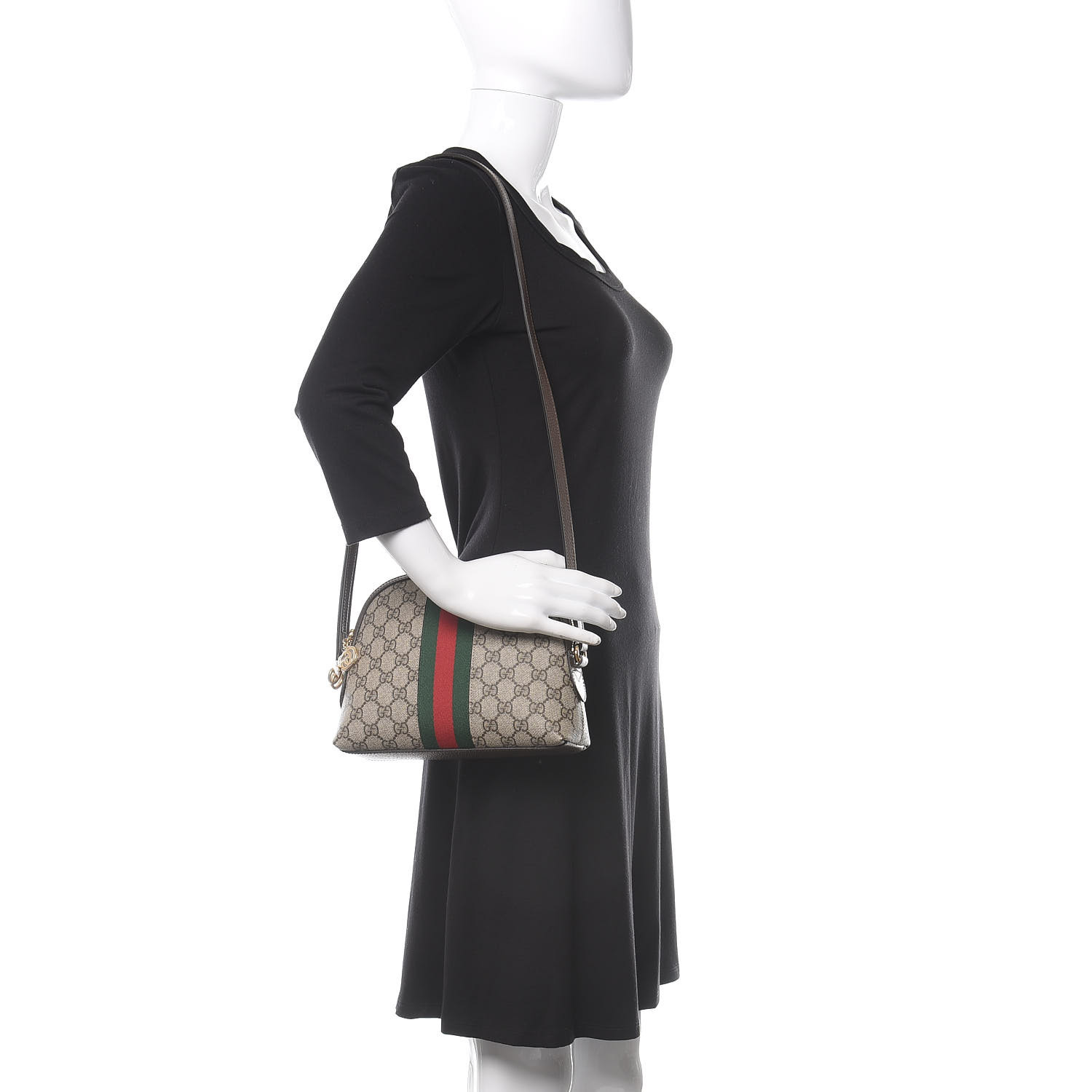 GUCCI GG Supreme Monogram Web Small Ophidia Shoulder Bag Brown