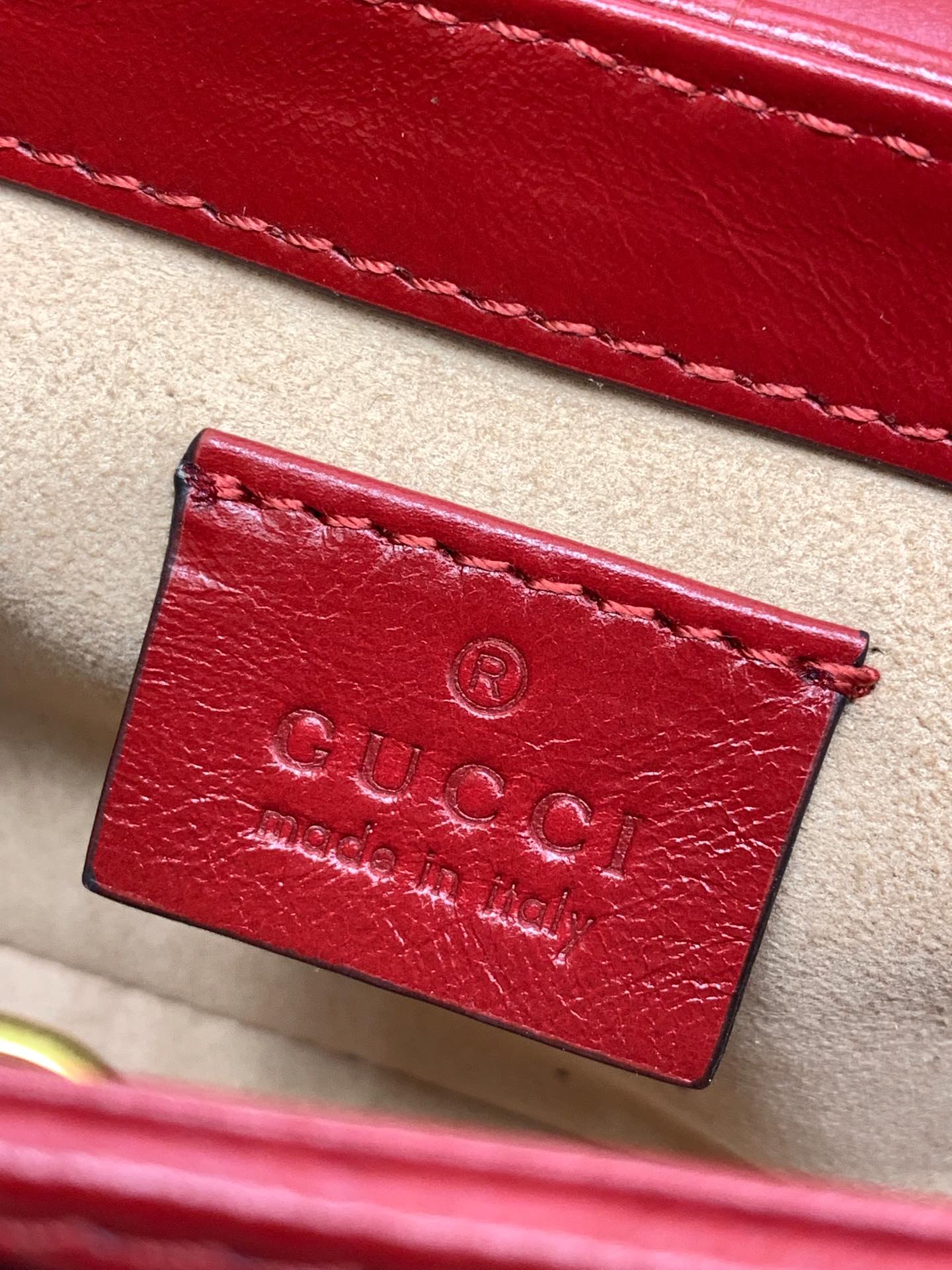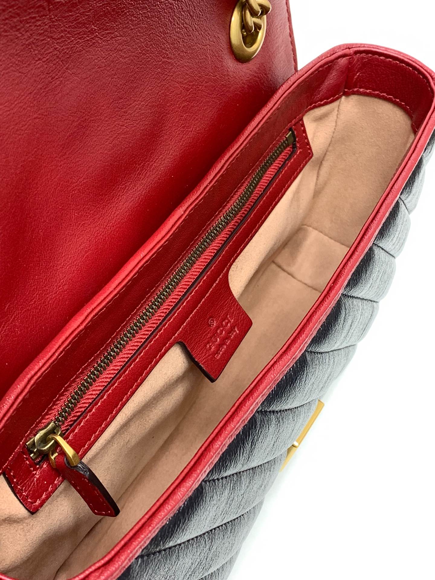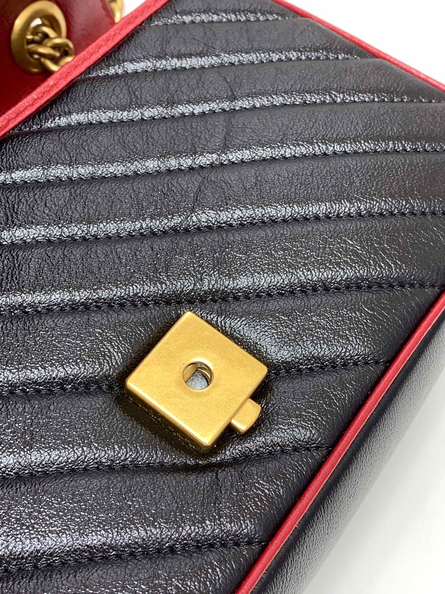 GUCCI 1Vintage Effect Calfskin Matelasse Small GG Marmont Shoulder Bag Black Hibiscus Red