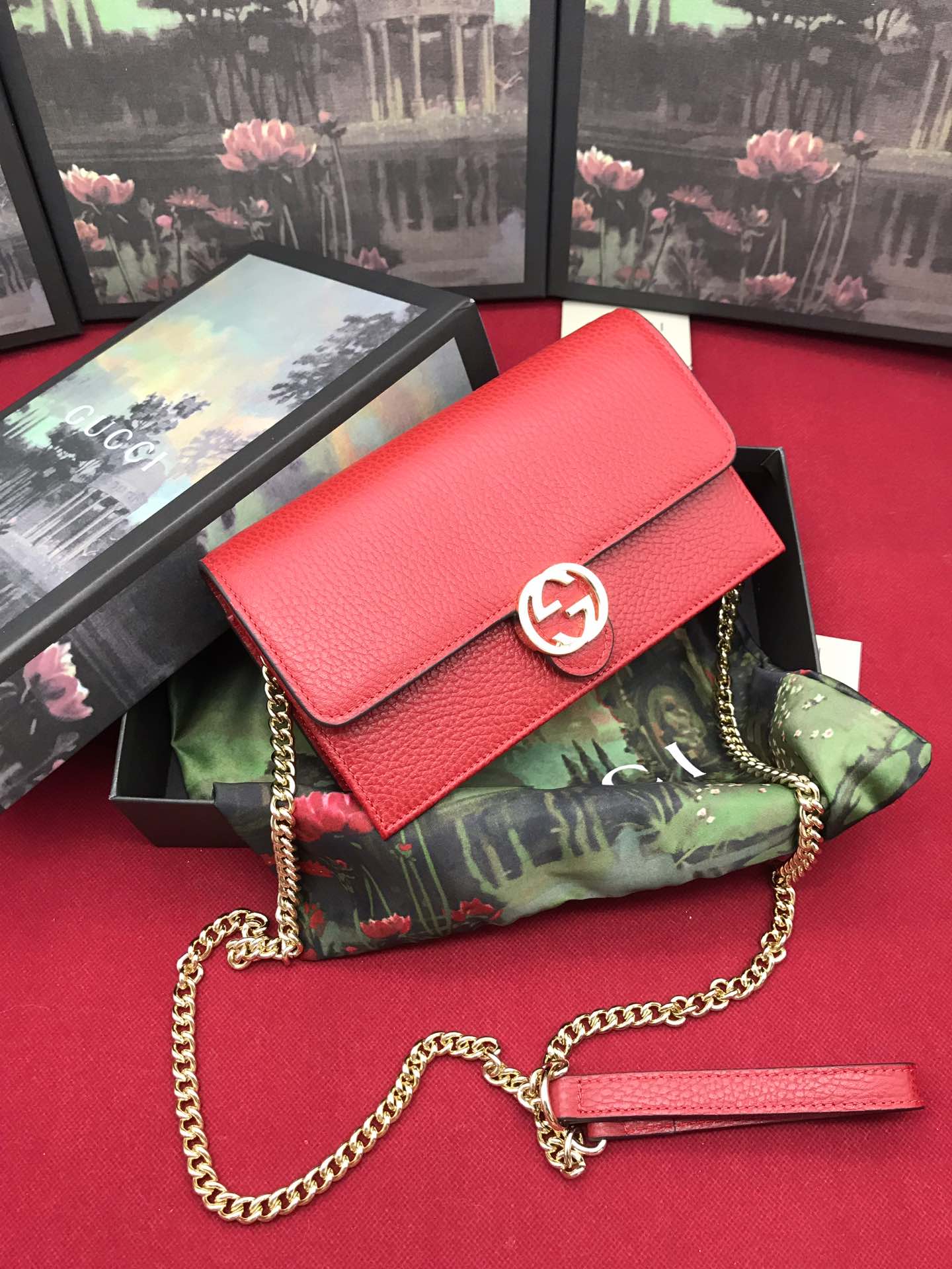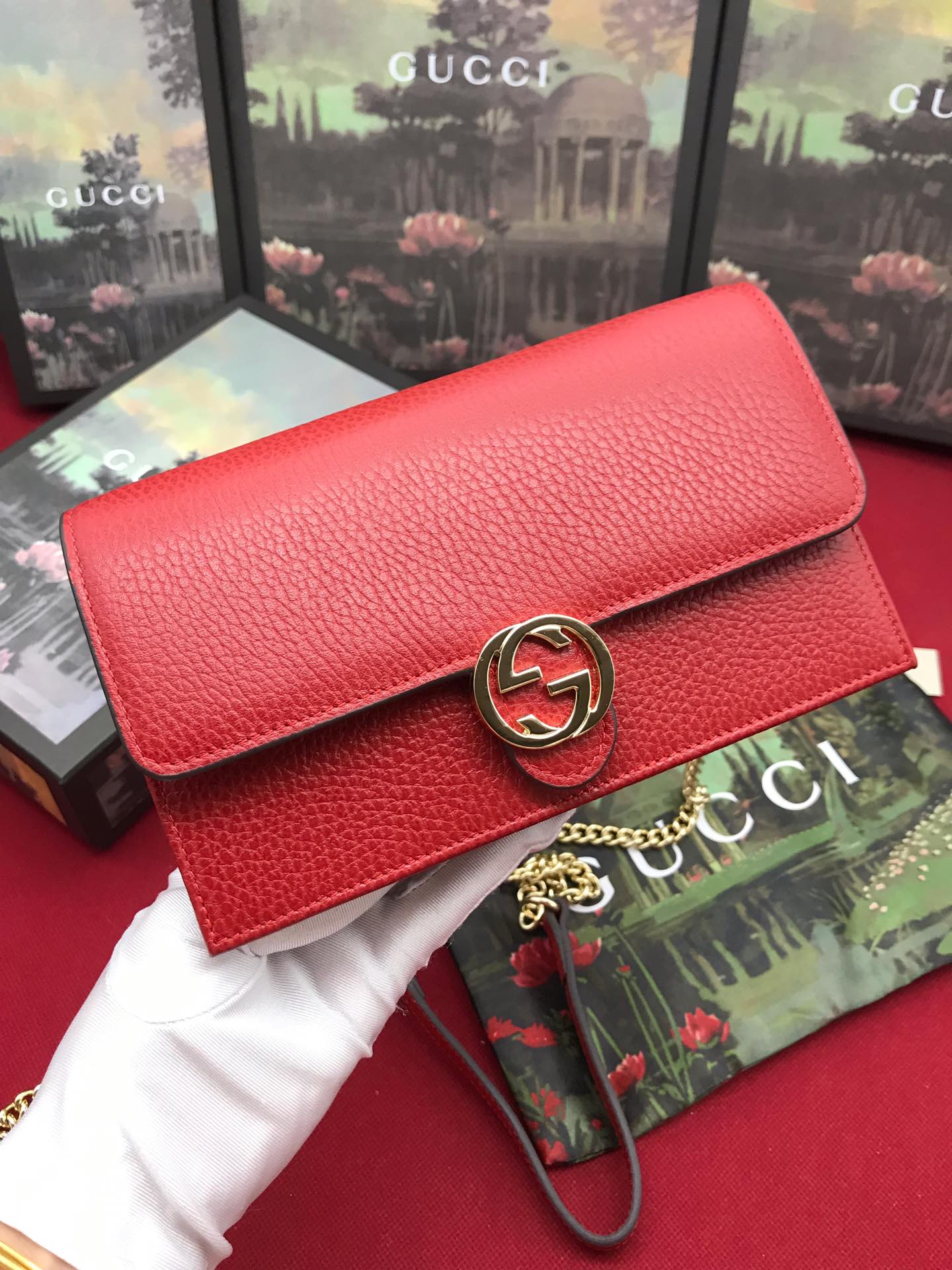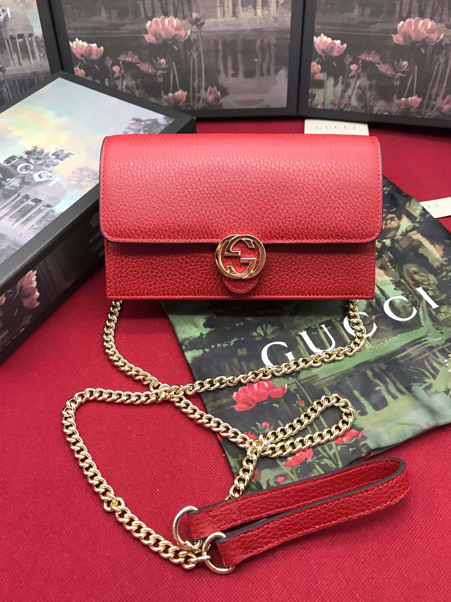 GUCCI Dollar Calfskin Interlocking G Chain Wallet Red