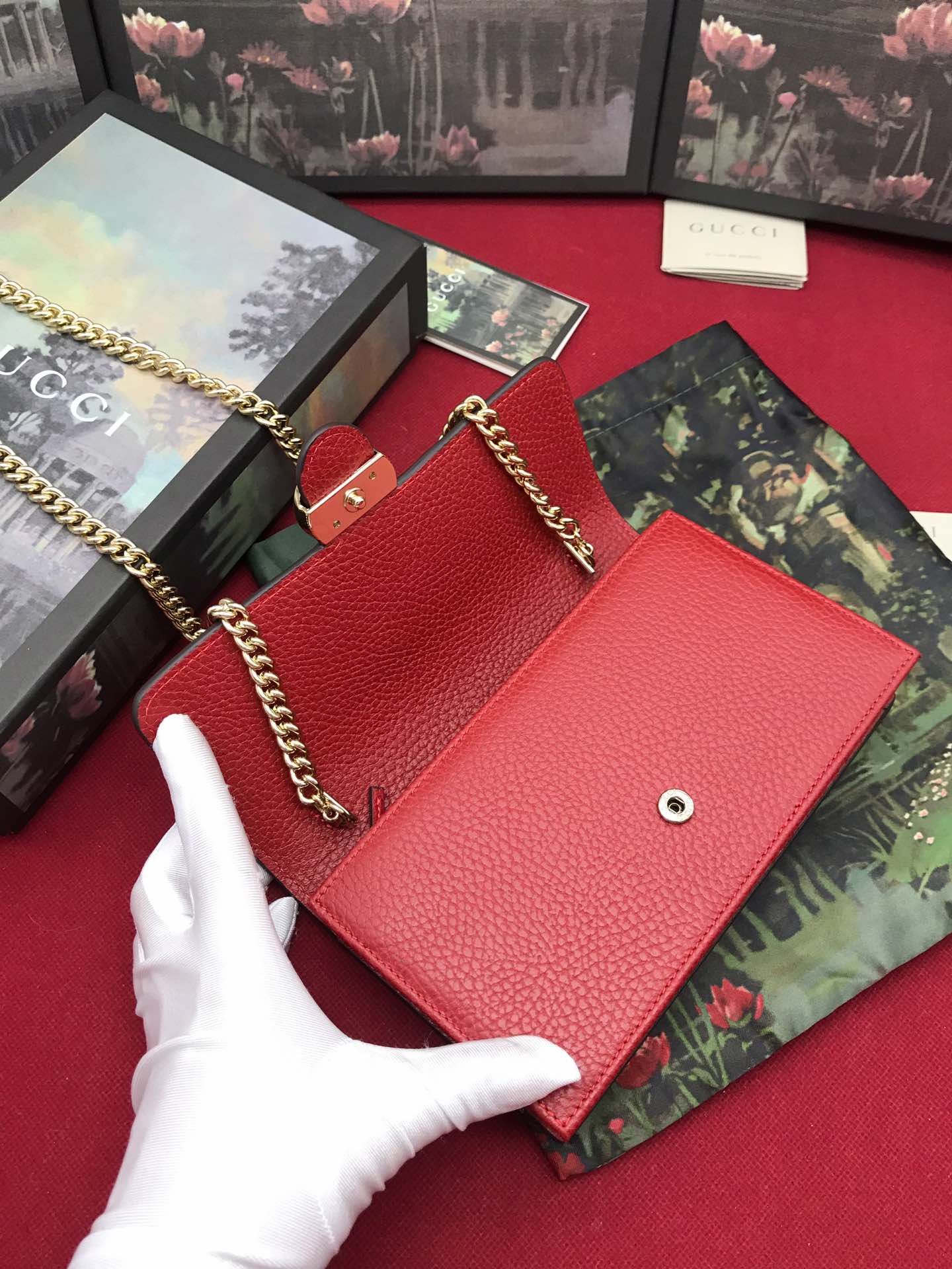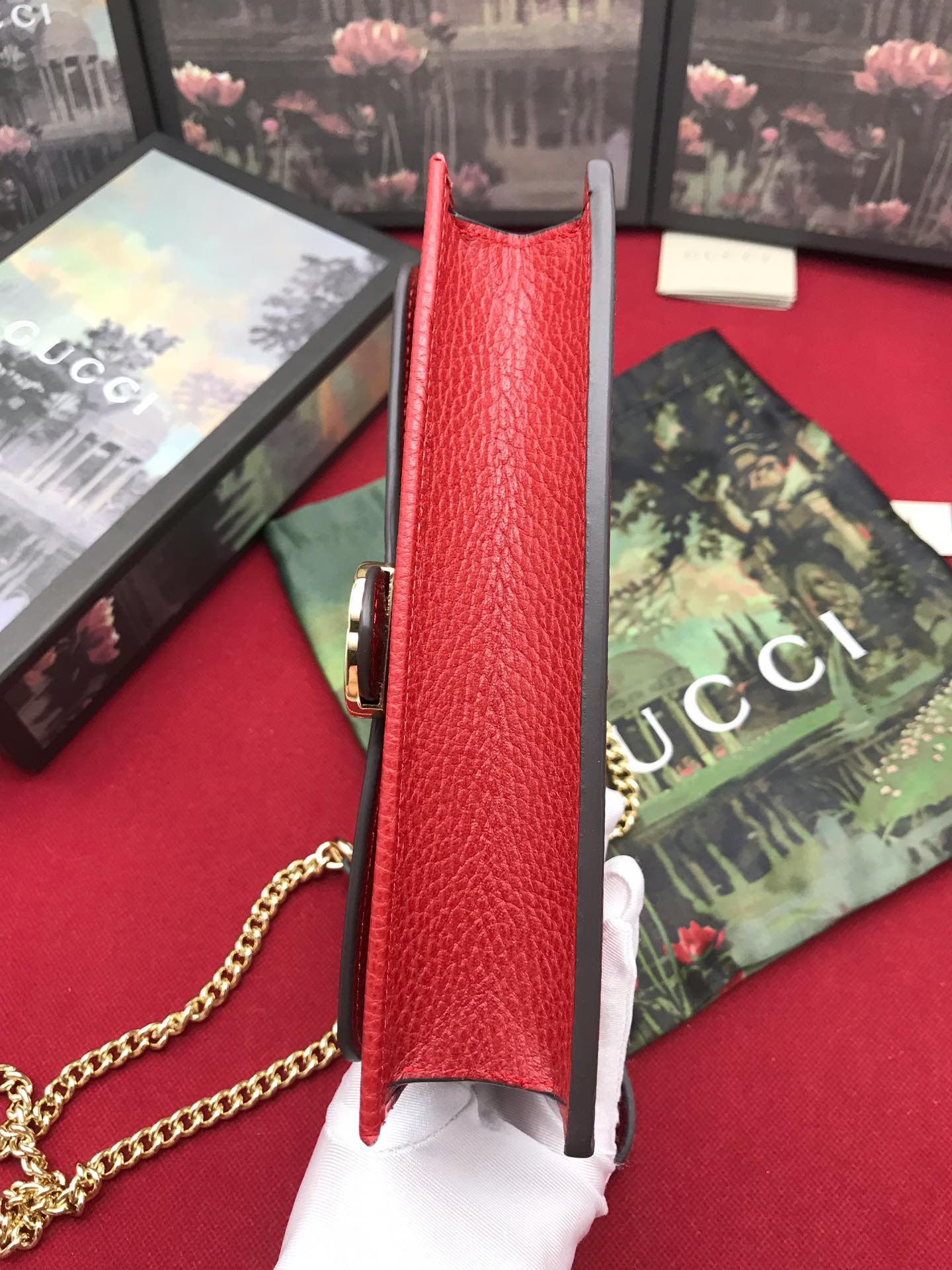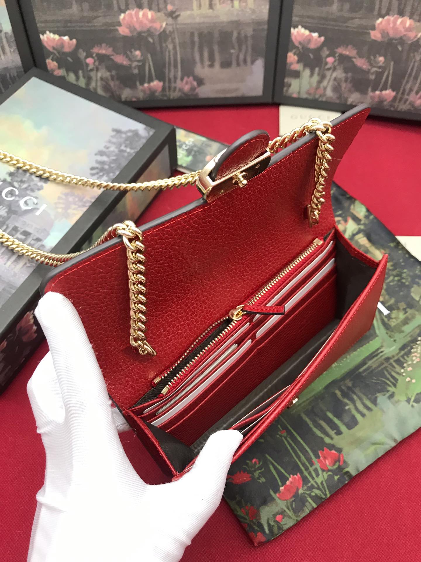 GUCCI Dollar Calfskin Interlocking G Chain Wallet Red