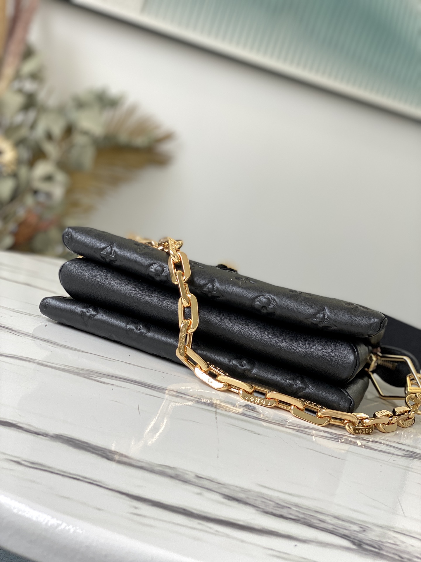 LOUIS VUITTON Lambskin Embossed Monogram Coussin PM Black