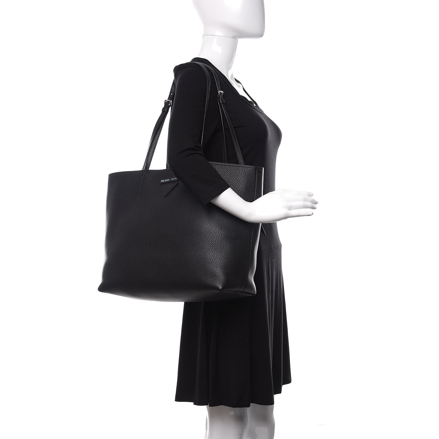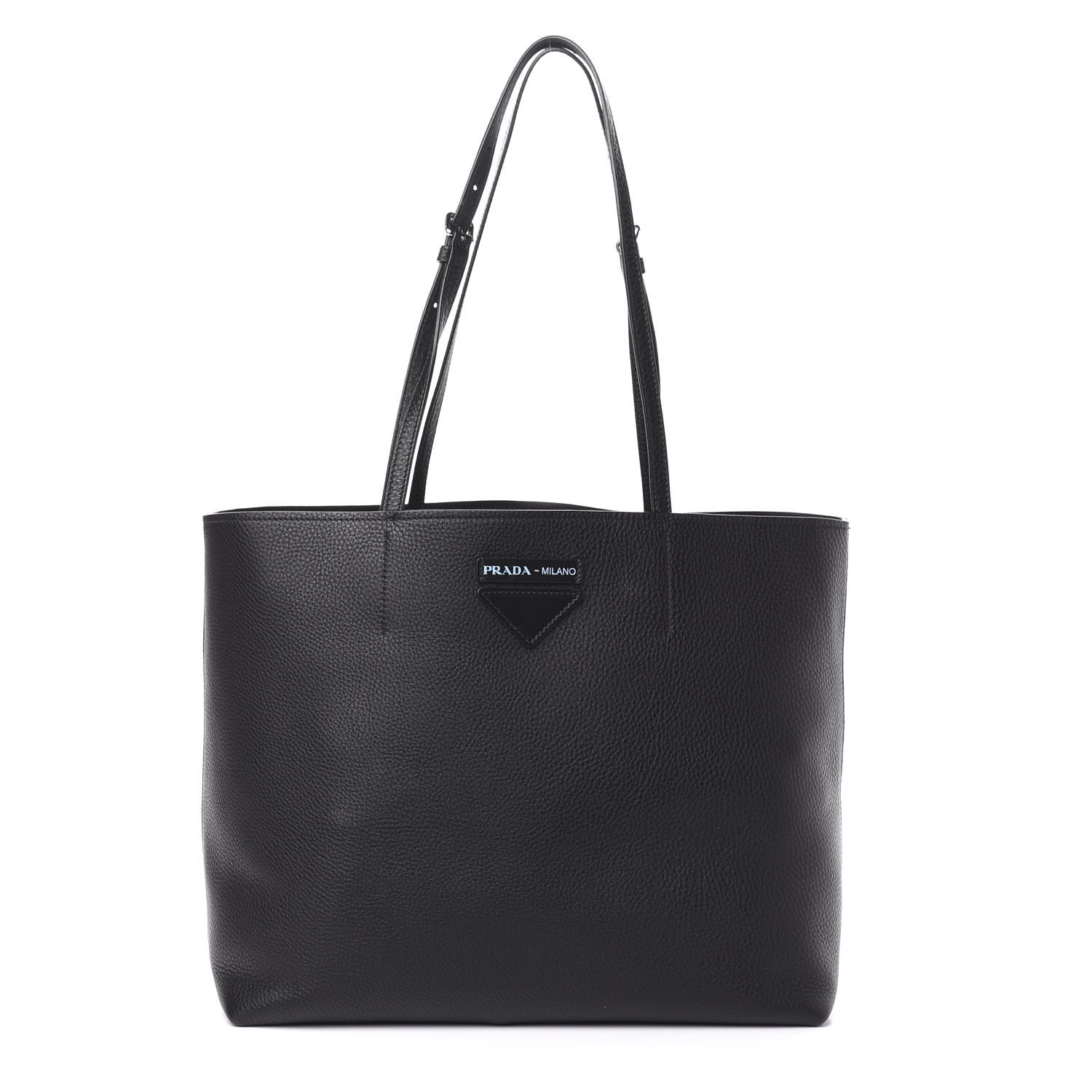 PRADA Vitello Daino Etiquette Shopping Bag Black