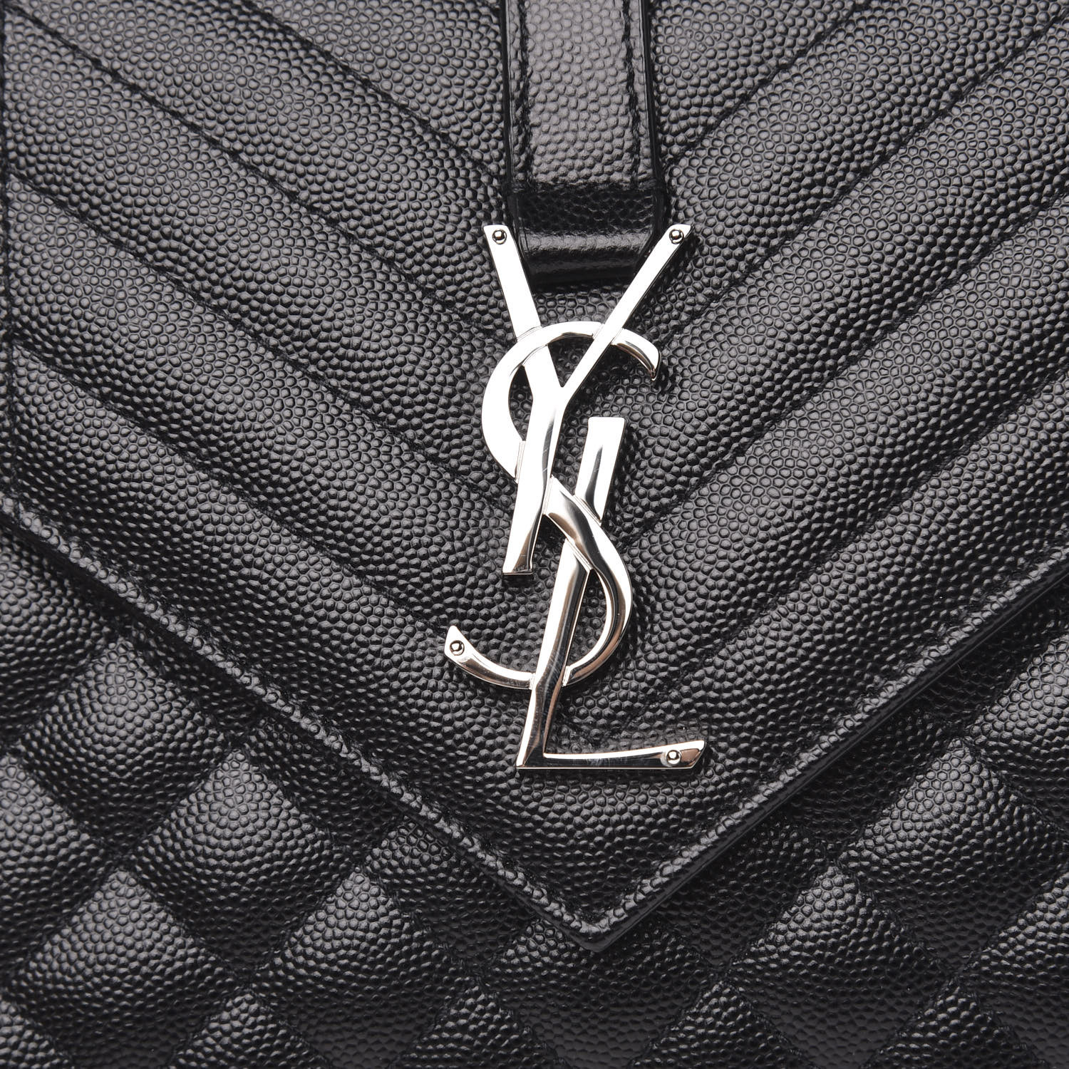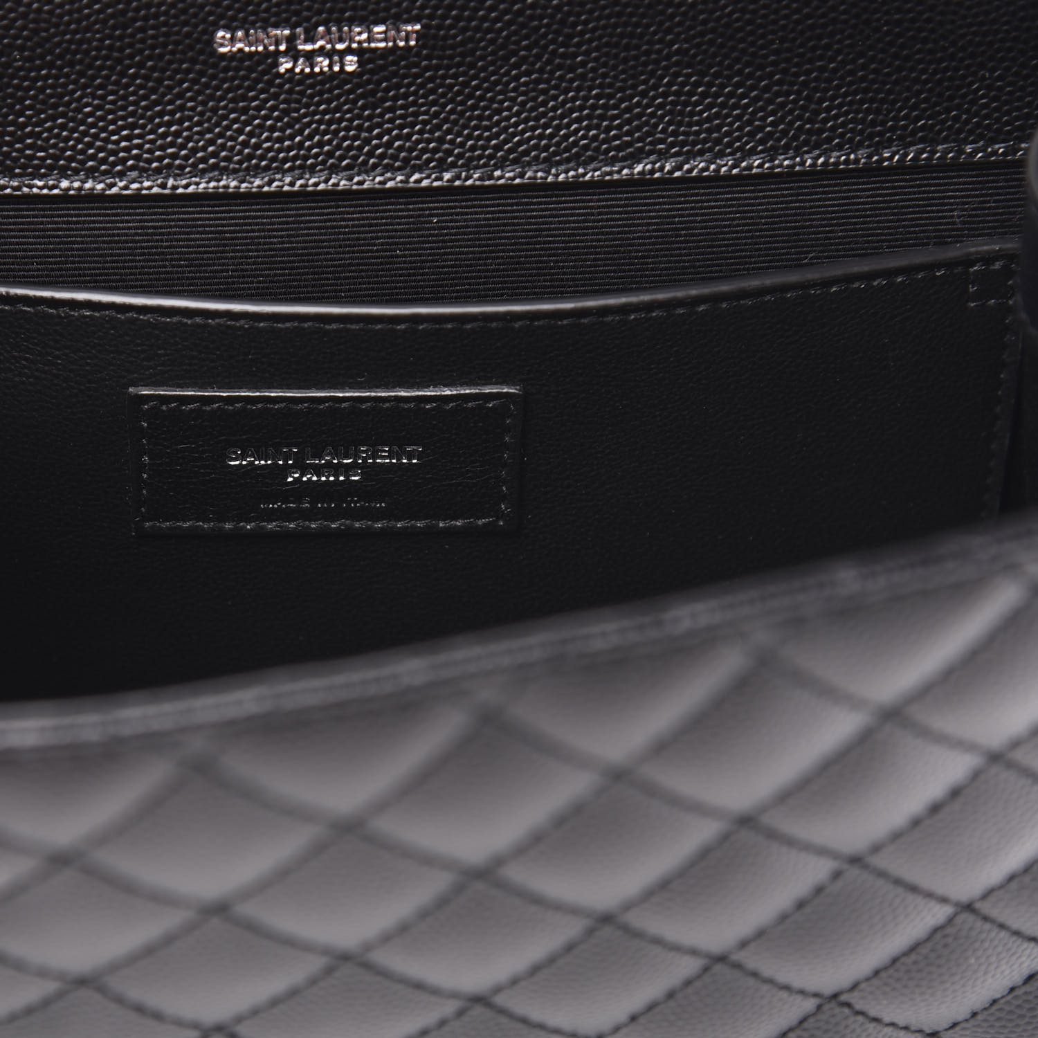 YSL Grain De Poudre Textured Mixed Matelasse Triquilt Medium Monogram Satchel Black