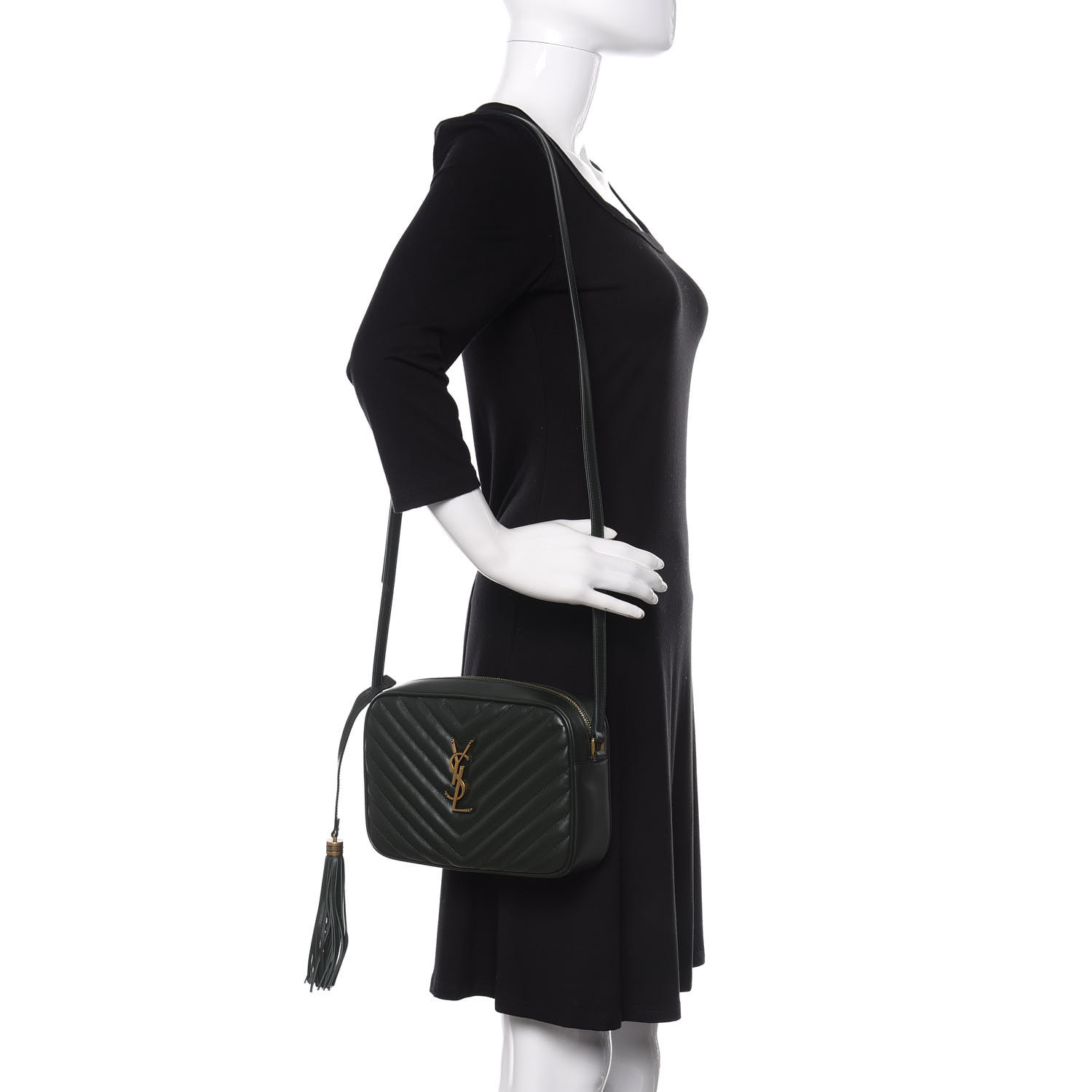 YSL Calfskin Matelasse Monogram Lou Camera Bag Green