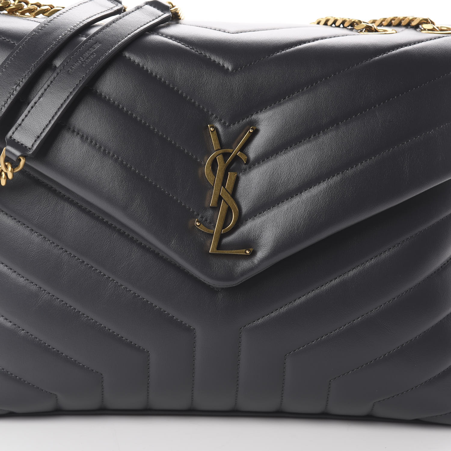 YSL Calfskin Y Quilted Monogram Medium Loulou Chain Satchel Asphalt
