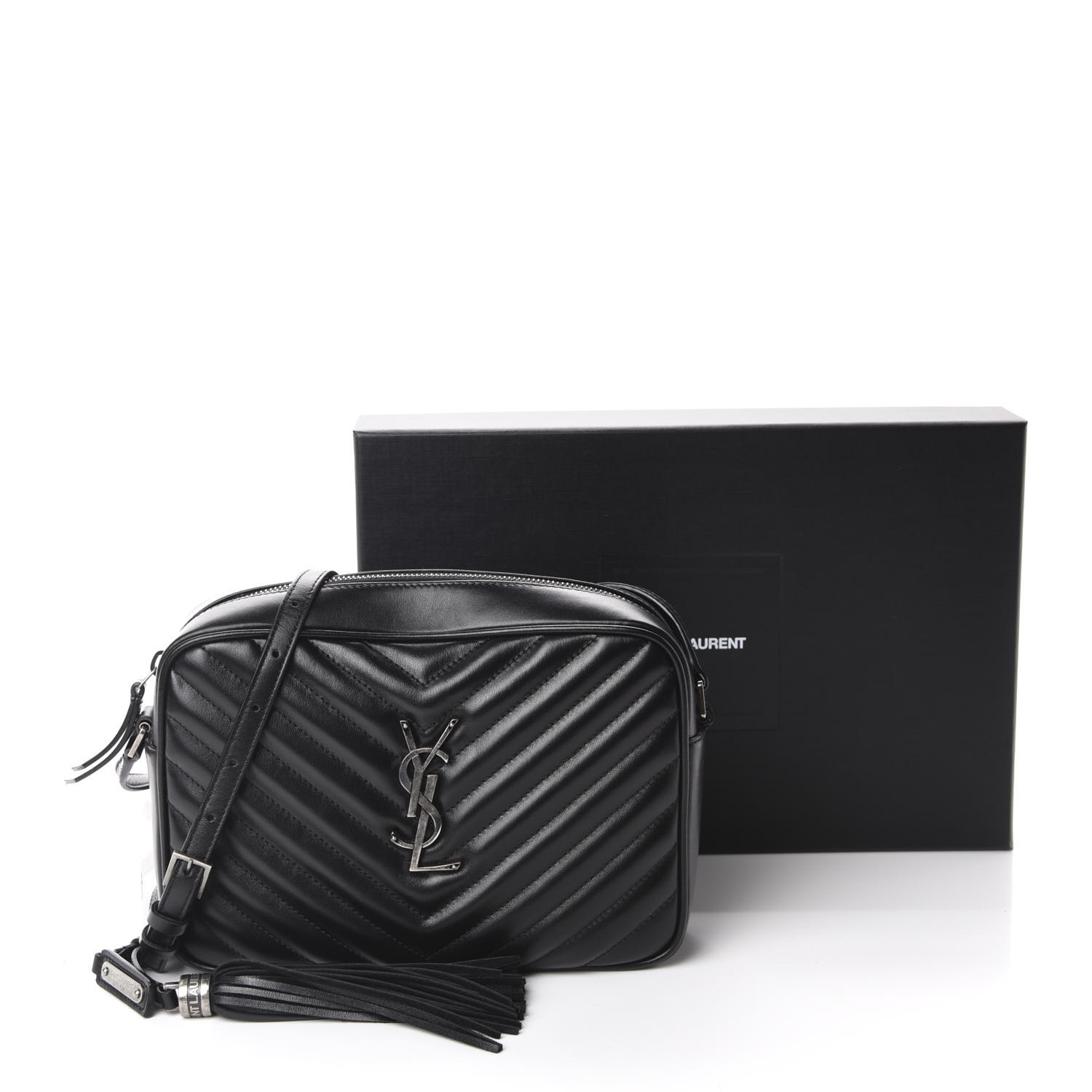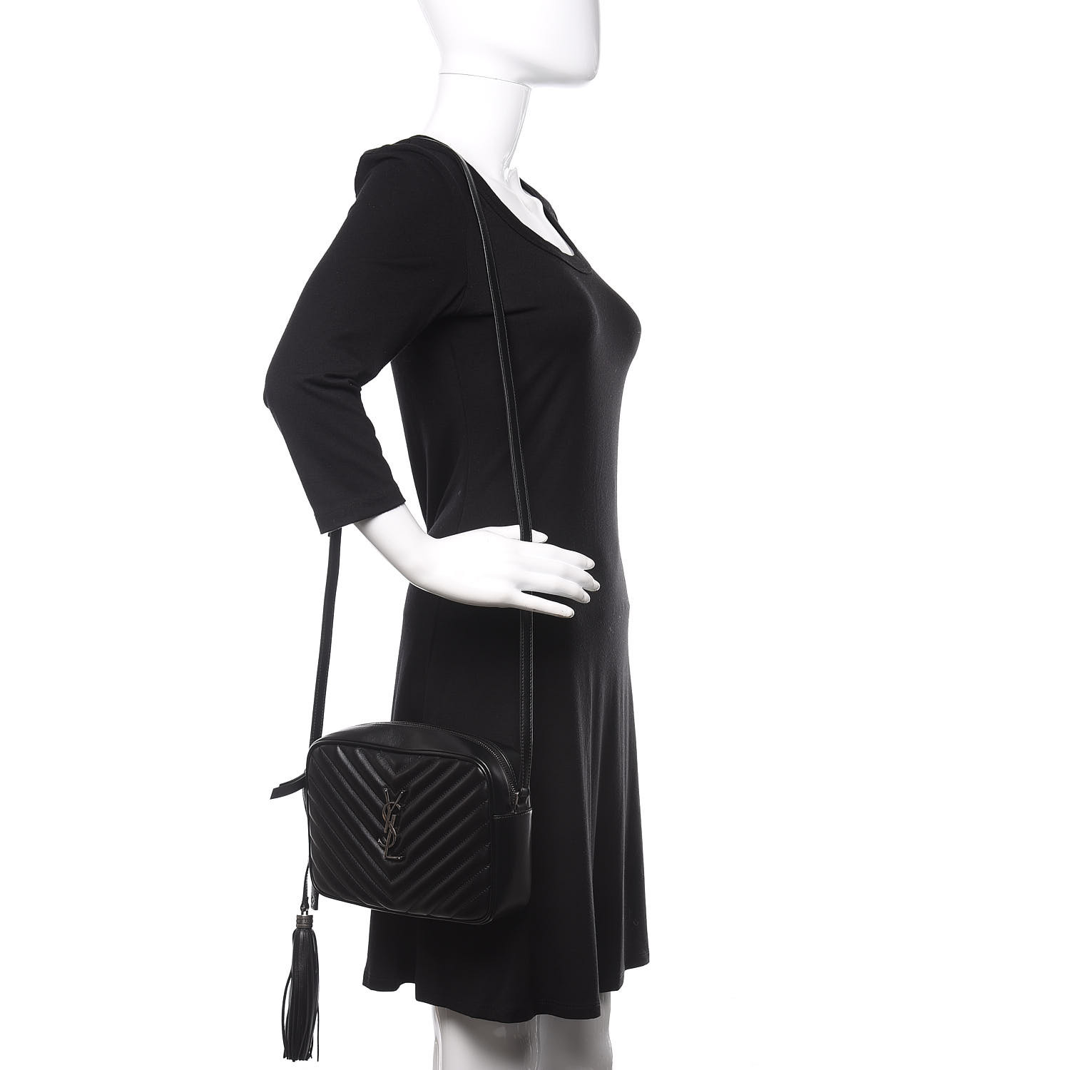 YSL Calfskin Matelasse Monogram Lou Camera Bag Black