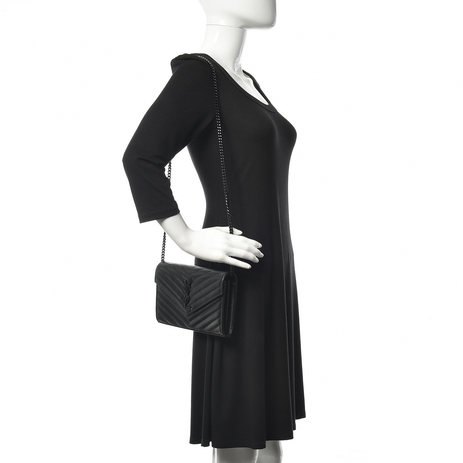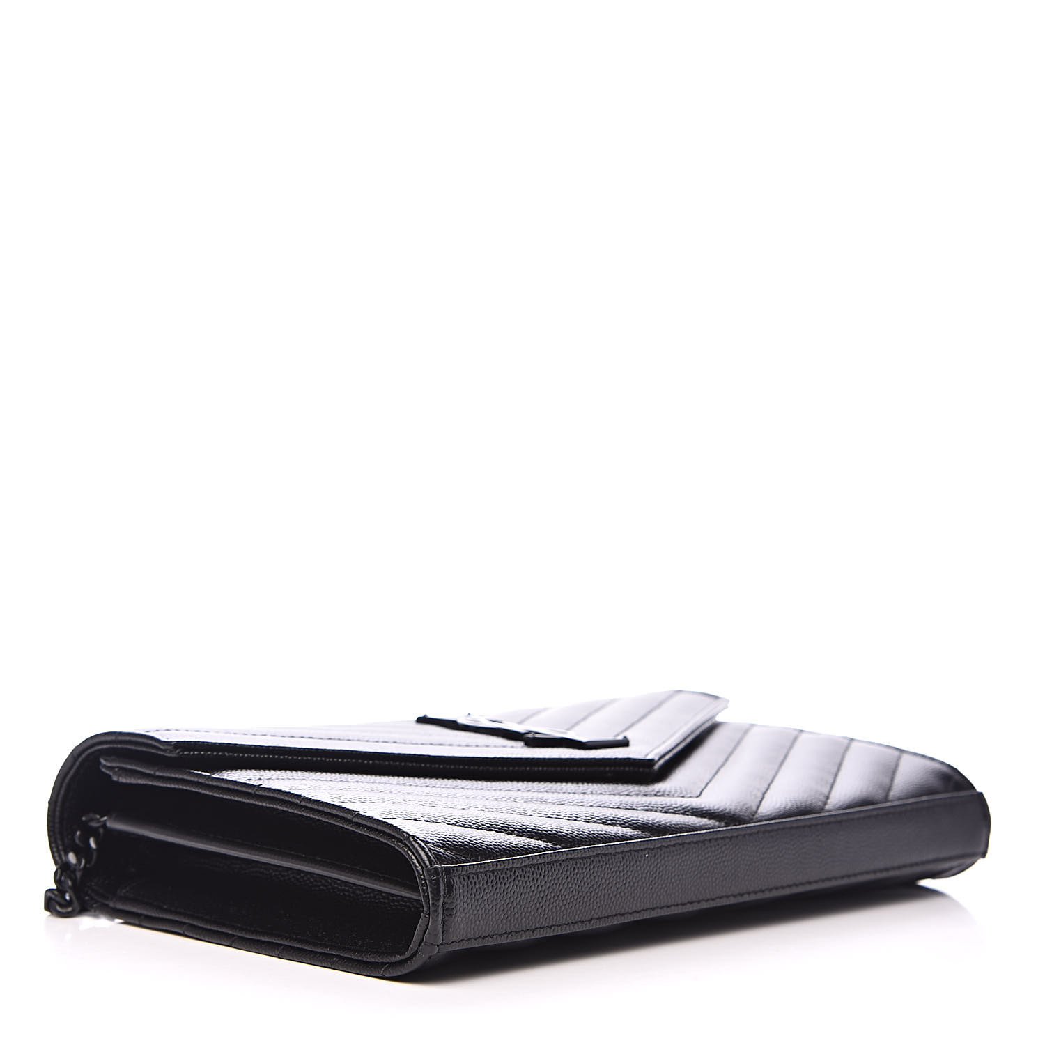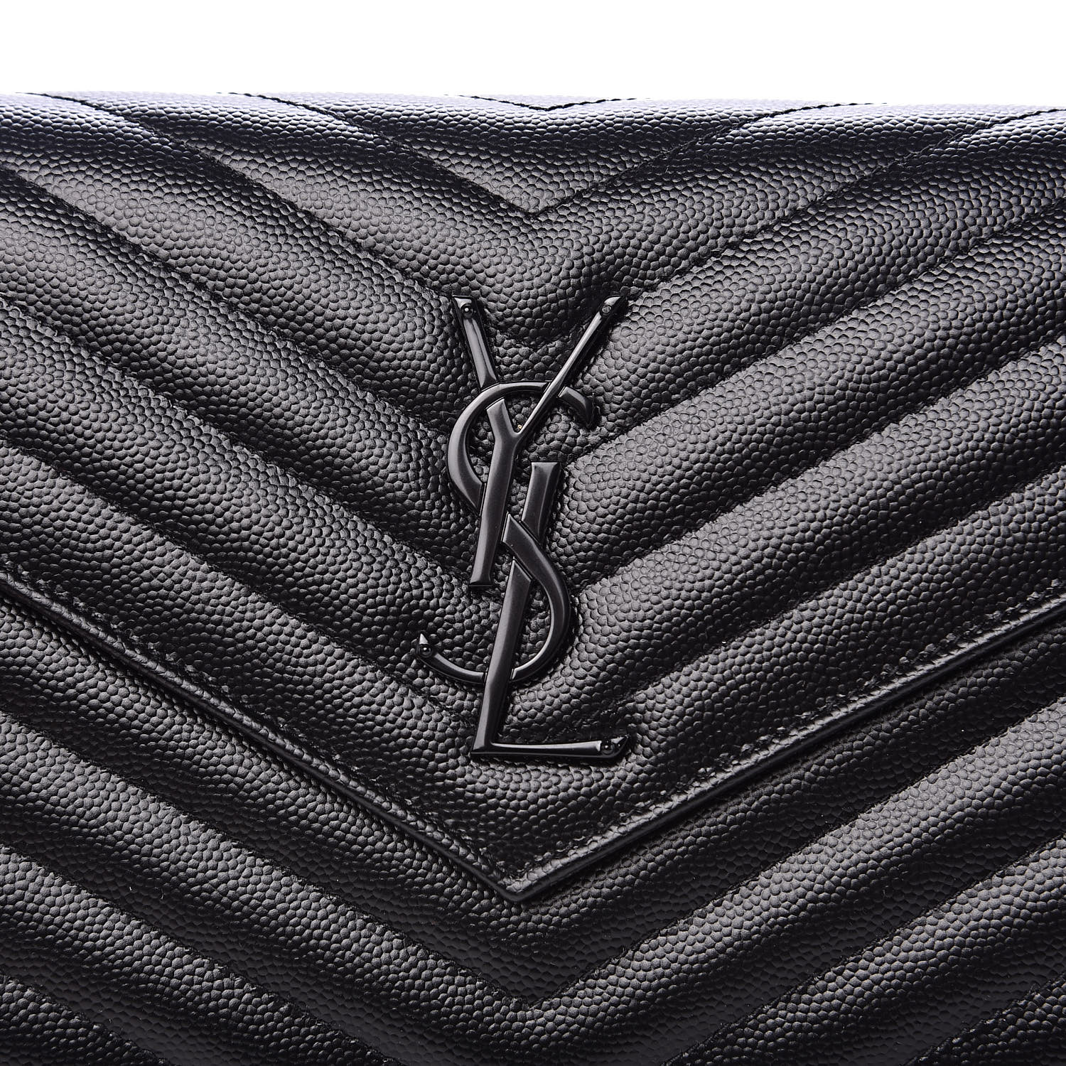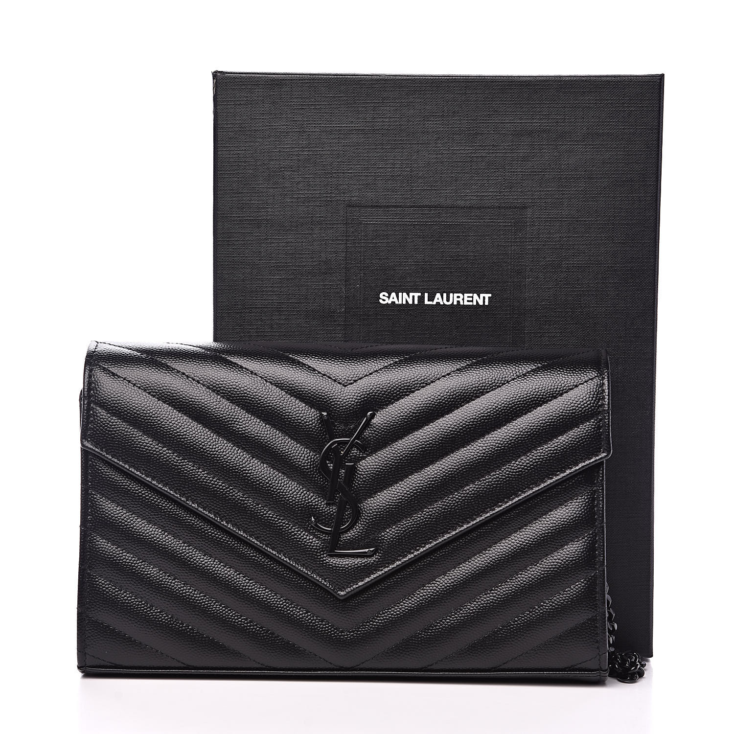 YSL Grain De Poudre Matelasse Chevron Monogram Chain Wallet Black