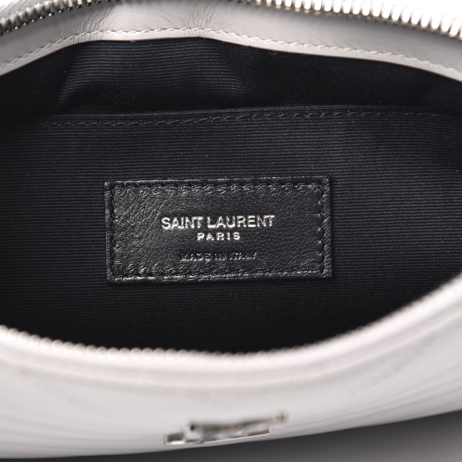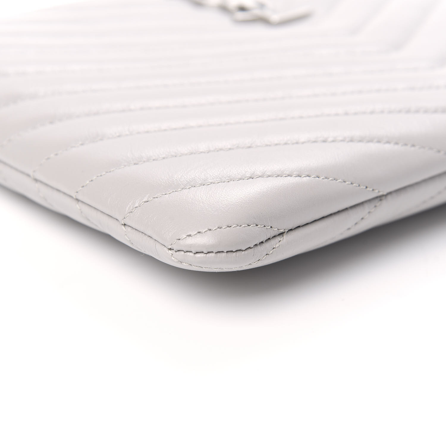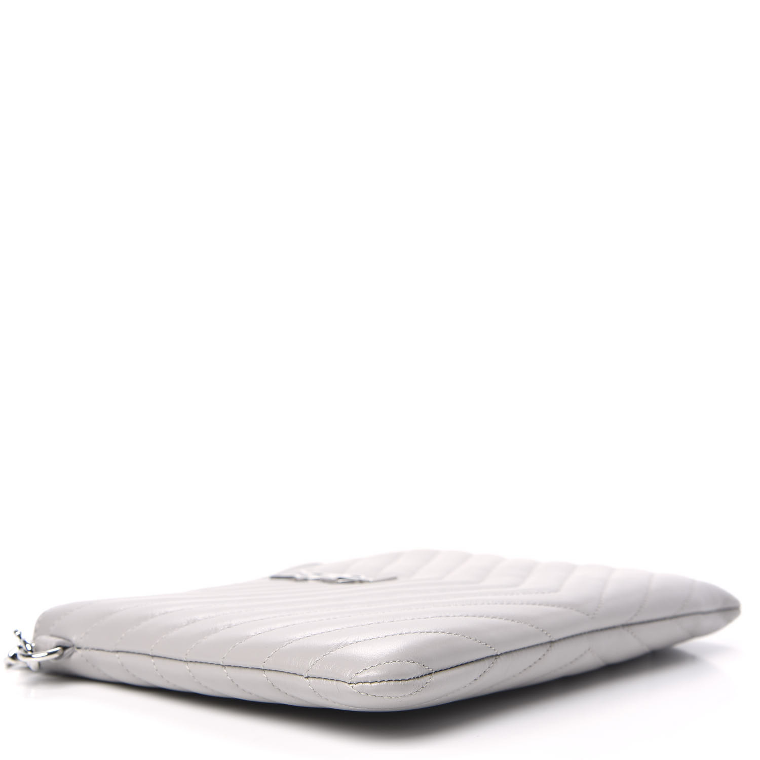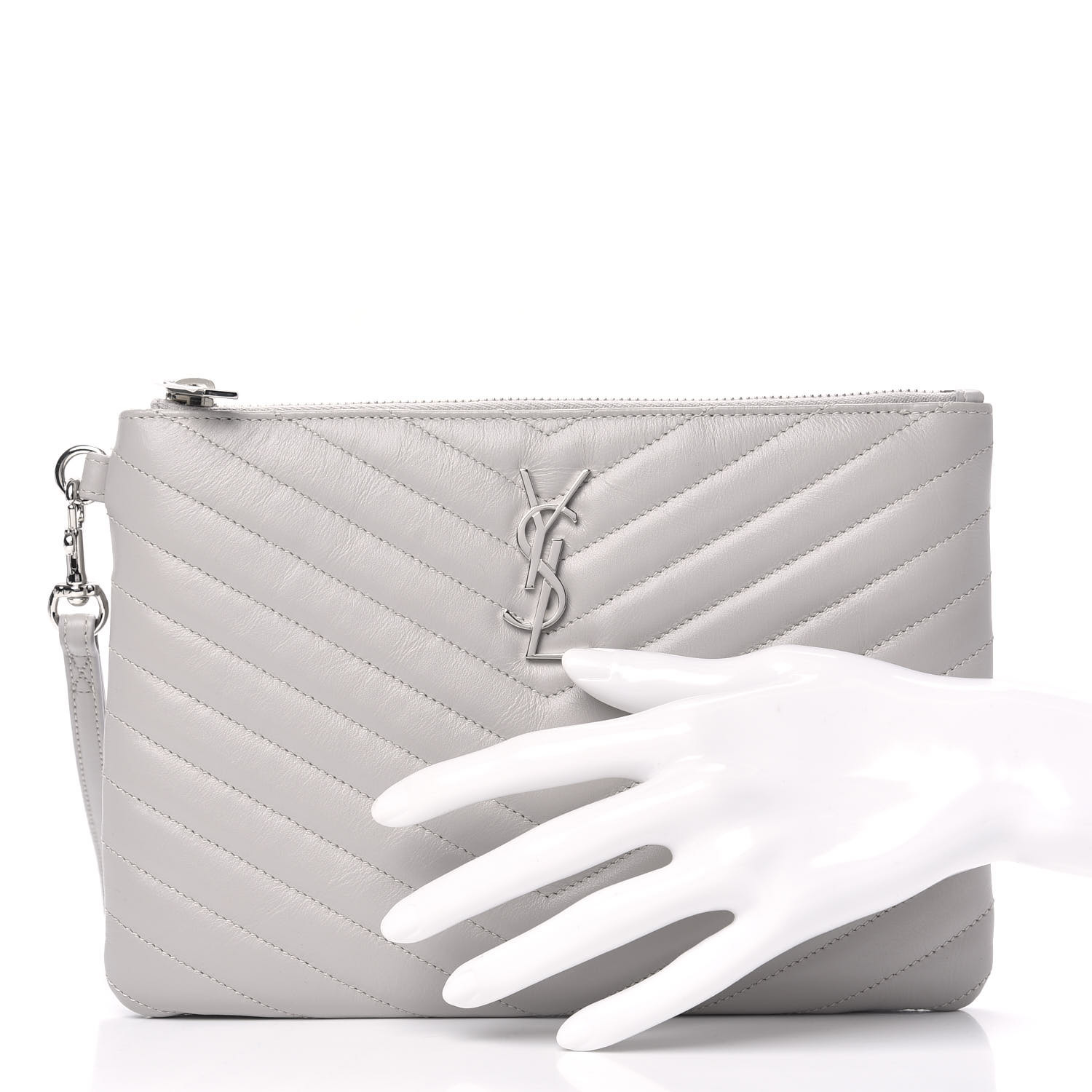 YSL Calfskin Matelasse Chevron Monogram A5 Wristlet Granite