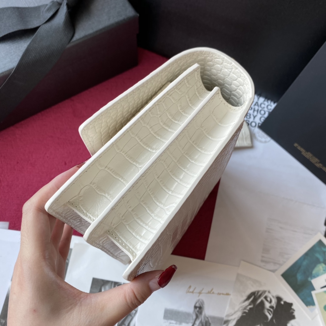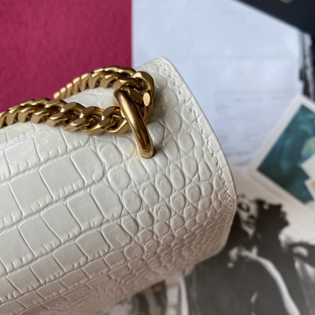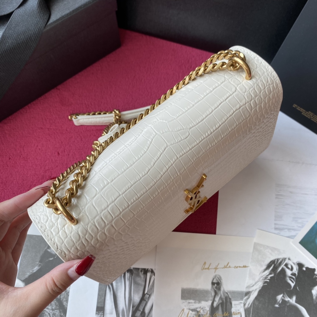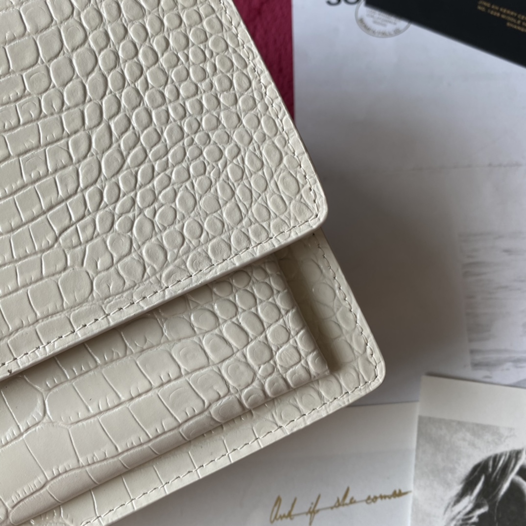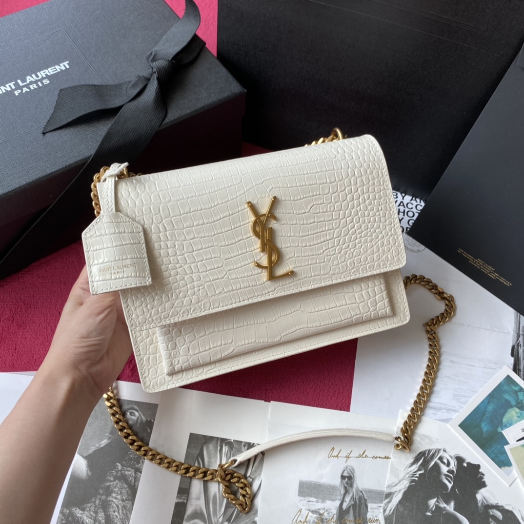 YSL Calfskin Crocodile Embossed Monogram Sunset Chain Wallet Blanc Vintage