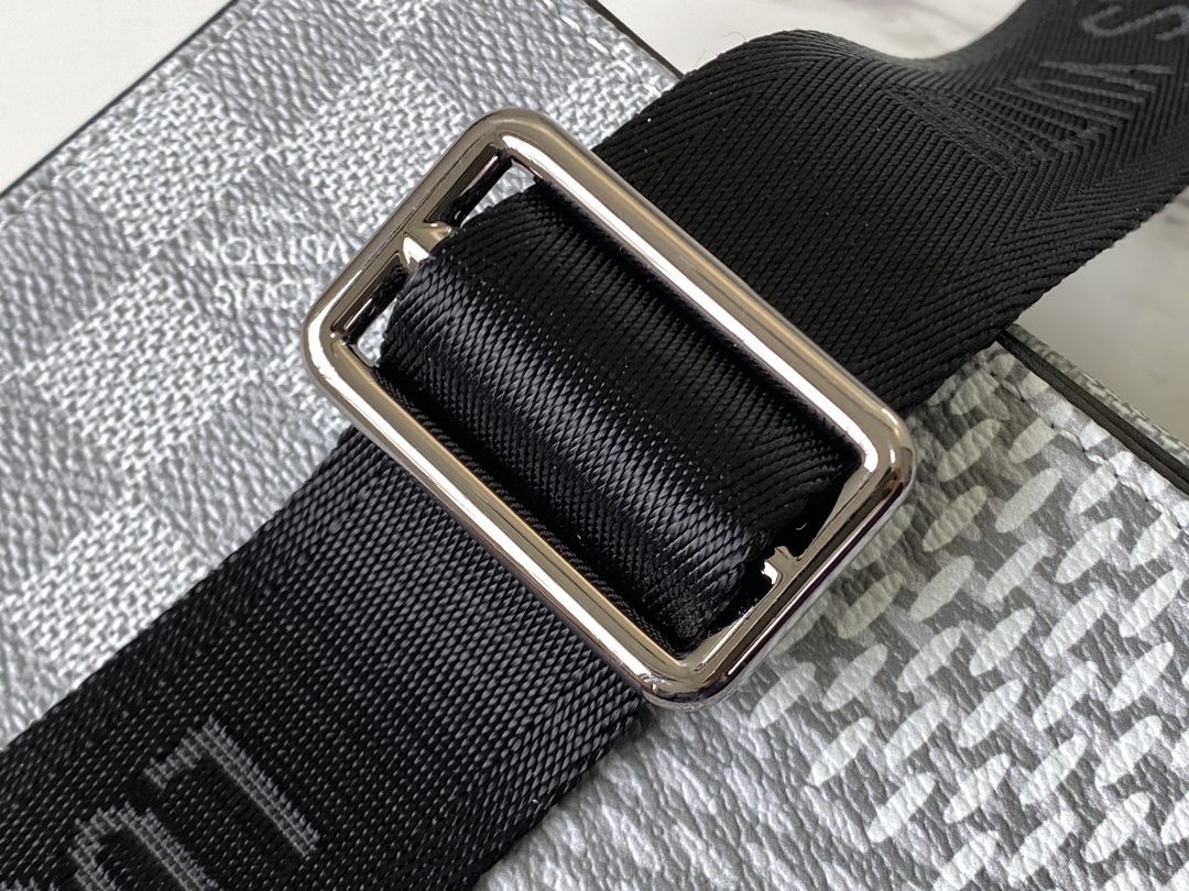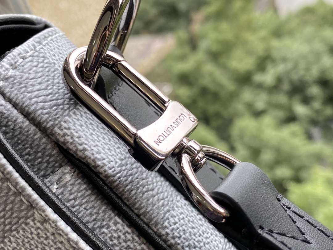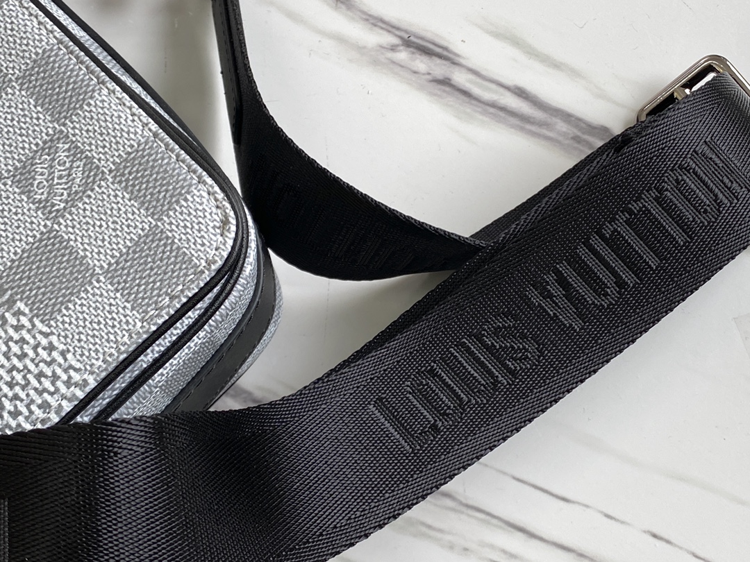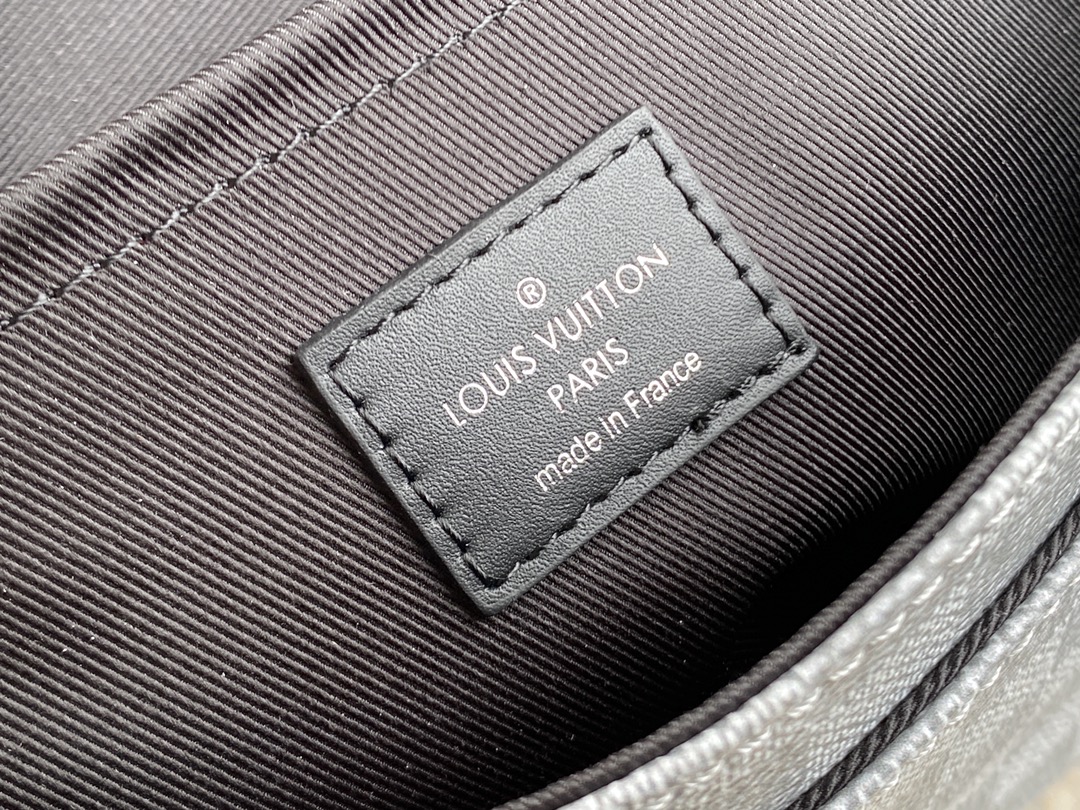 LV N50014 Silver White This studio messenger bag is made of Damier Graphite 3D canvas, telling the modern renewal of the brand's legendary plaid. The neat configuration includes ample functional space, and the detachable shoulder strap is implicitly embellished with the brand logo, which defines a new trend for the storage of accompanying items.