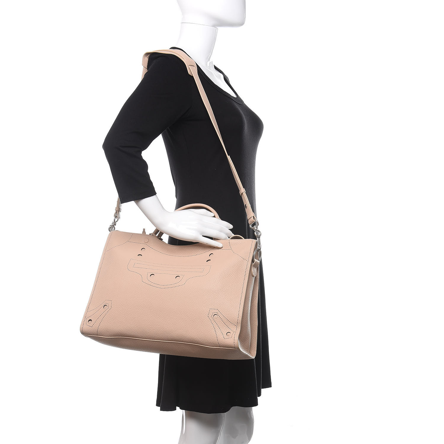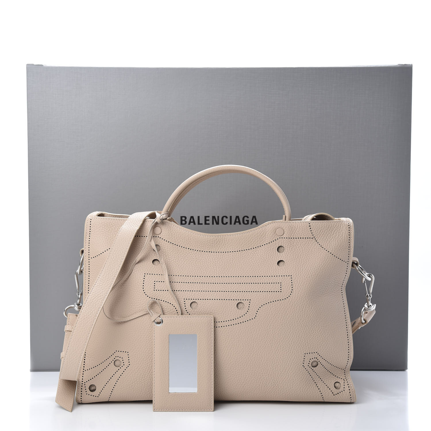 BALENCIAGA Calfskin Blackout Hardware Perforated City Nude